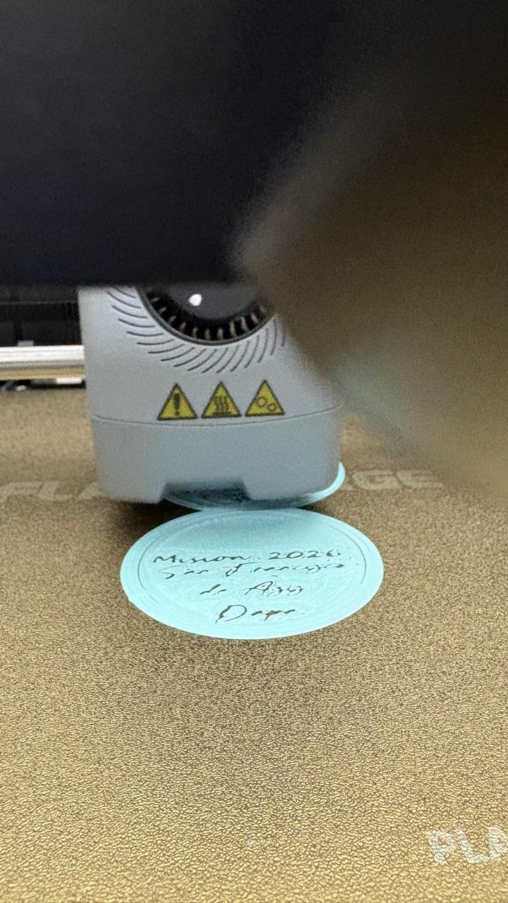 Đây là một mẫu in 3D vô cùng ý nghĩa, được thiết kế dưới dạng một chiếc huy hiệu hình tròn tinh tế. Sản phẩm này được tạo ra như một món quà nhỏ đầy tình cảm, dành tặng riêng cho các bạn trẻ tham gia vào các chuyến truyền giáo tại giáo xứ San Francisco de Asís. Với thiết kế tối giản nhưng mang tính biểu tượng cao, chiếc huy hiệu không chỉ là một phụ kiện trang trí mà còn là dấu ấn kỷ niệm đáng nhớ cho những người đã dấn thân vì công việc cộng đồng.
