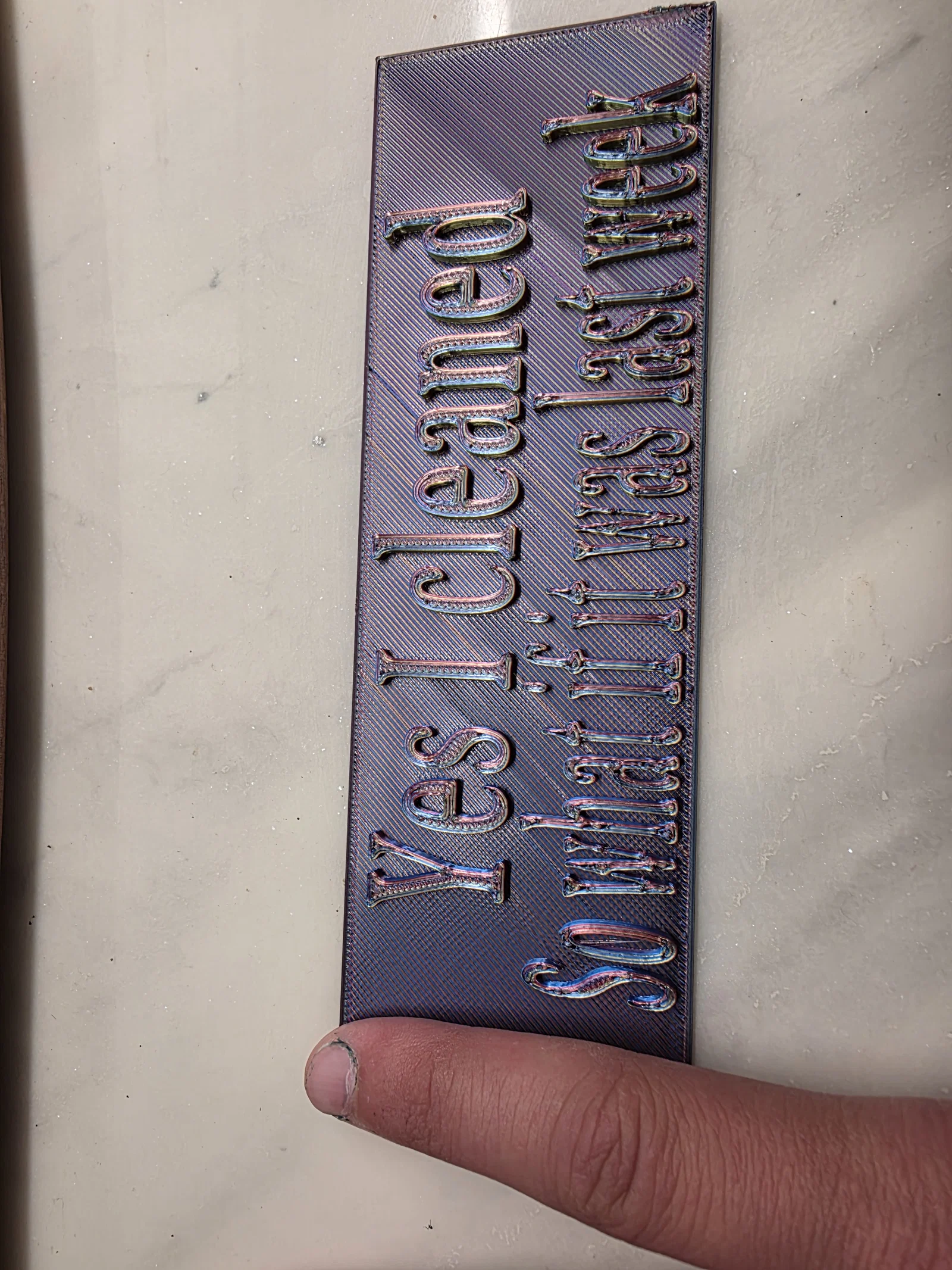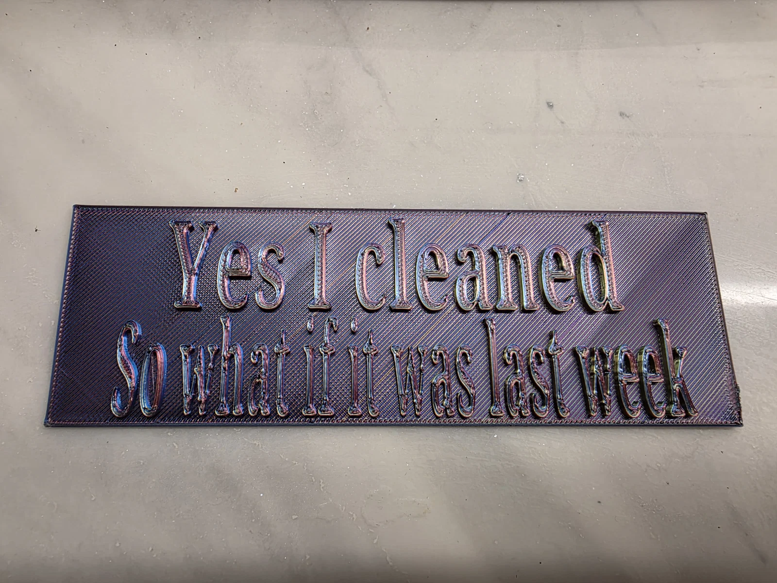 Một chiếc bảng vui nhộn cực kỳ hợp để treo trong nhà bạn. Tôi biết là một số máy in cho phép mình dừng giữa chừng để thay dây nhựa, mình cũng có thể làm vậy nhưng lúc đó mình chỉ có sẵn mỗi màu này thôi. Tôi đã tách phần chữ ra ở file STL riêng, bạn có thể đổi màu cho chữ rồi dán nó lên sau. Bạn cũng có thể phóng to bảng này tùy ý nếu có máy in khổ lớn, hoặc kể cả khi dùng máy nhỏ thì vẫn thoải mái chỉnh kích thước nhé.