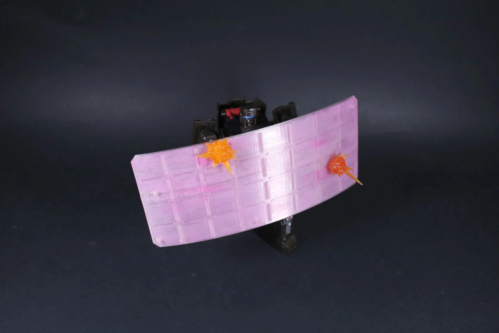 Lấy cảm hứng từ một phân cảnh trong bộ truyện tranh Skybound, đây là lá chắn năng lượng (forcefield) dành cho Trailbreaker! Ở mặt sau có một cặp tay cầm để Trailbreaker giữ và nâng lá chắn lên. Có thể hơi bất tiện một chút vì khớp tay của mô hình đôi khi hơi lỏng. Ở mặt trước của lá chắn, chúng tôi có hai phiên bản: một loại có chốt 3mm để gắn các phụ kiện hiệu ứng và một loại không có chốt nếu bạn thích kiểu dáng gọn gàng hơn. Về màu sắc, chúng tôi in lá chắn bằng nhựa trong suốt (clear filament), sau đó phủ vài lớp sơn màu hồng tím thật nhạt và loãng. Bạn cũng có thể xoay lá chắn theo nhiều hướng khác nhau để tạo dáng cho Trailbreaker thêm sinh động. === Lắp ráp === Như đã đề cập, có hai phiên bản lá chắn và cả hai đều là dạng in một mảnh đơn giản. === Chúc các bạn vui vẻ khi bổ sung món phụ kiện ấn tượng này vào bộ sưu tập Trailbreaker của mình. Chúc in 3D vui vẻ! =) === Mô hình này không được phép tải lên hoặc bán dưới bất kỳ hình thức nào và chỉ dành cho mục đích sử dụng cá nhân. Hãy xem thêm các dự án của chúng tôi tại trang Facebook (http://www.facebook.com/FunbieStudios) hoặc trang web (http://www.FunbieStudios.com/). Ủng hộ chúng tôi trên Patreon - https://www.patreon.com/FunbieStudios | Danh mục mô hình đầy đủ - https://funbiestudios.com/model-catalog