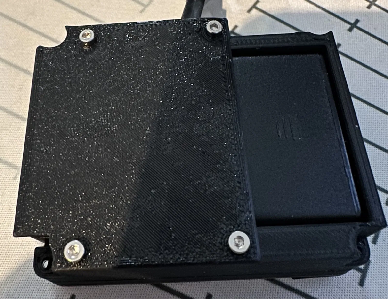 Sử dụng bốn ốc vít m2 nhỏ để gắn cửa pin. m2x4 hoặc lớn hơn. Đầu nhọn dễ sử dụng hơn. In lại phần dưới và cửa pin.