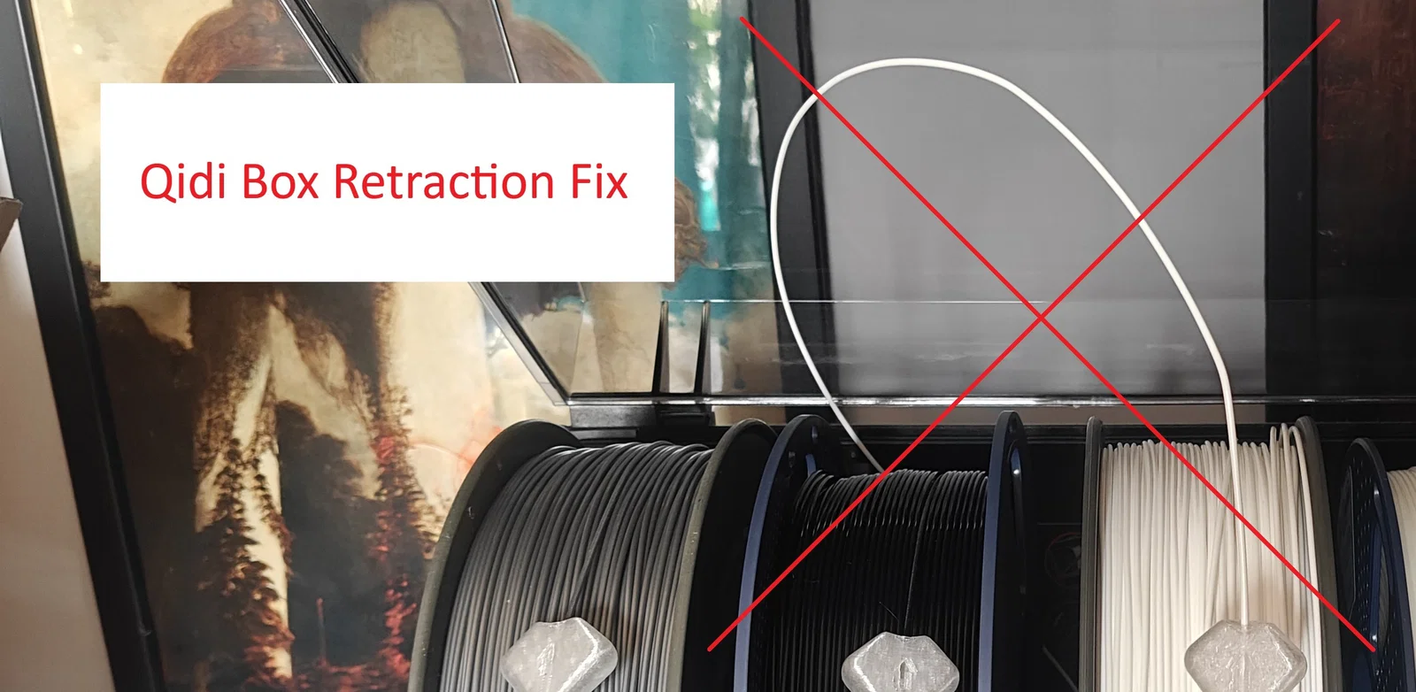 Nếu nhựa in của bạn bị tình trạng không rút lại đúng cách (lô nhựa không xoay) mà lại bị đùn ngược vào bên trong hộp Qidi Box thay vì cuộn lại vào lô — thì mô hình này sẽ giải quyết được vấn đề đó.