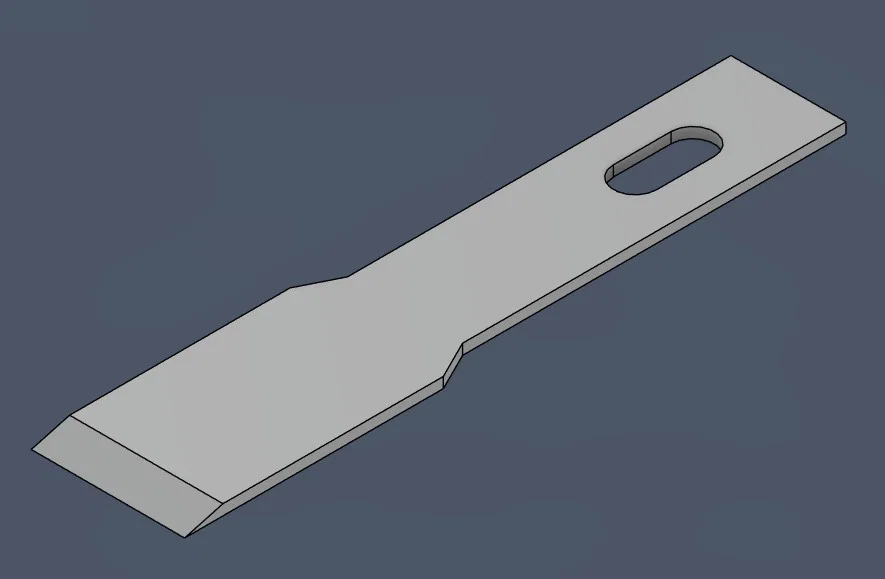 Thiết kế của lưỡi dao này mang đậm tính ứng dụng thực tế với phần mũi vát chéo dạng đục, rất phù hợp cho việc điêu khắc, gọt tỉa các chi tiết nhỏ hoặc cắt gọt trên các bề mặt nhựa, gỗ balsa hay giấy cứng. Phần lỗ khuyết phía trên được tính toán kỹ lưỡng để dễ dàng lắp ráp cố định vào các loại cán dao tương thích. Việc sử dụng file STEP giúp các bạn dễ dàng chỉnh sửa lại kích thước hoặc tùy biến thêm bớt các chi tiết khác trong các phần mềm CAD chuyên nghiệp như Fusion 360 hay SolidWorks mà không làm mất đi độ sắc nét của hình học ban đầu.