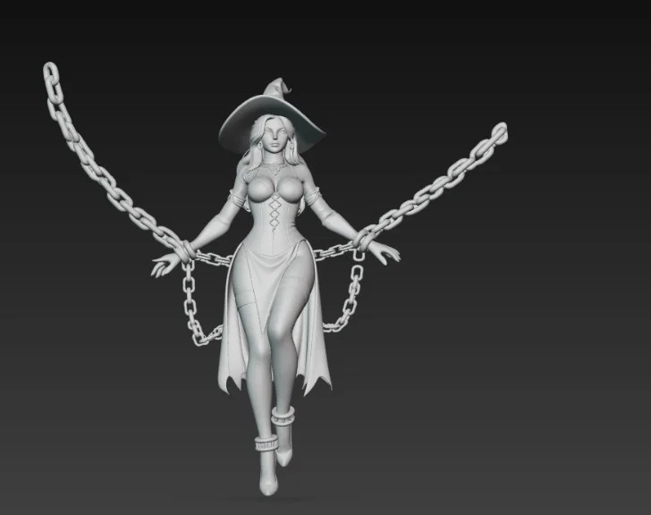 Đây là một mẫu in 3D đầy tính nghệ thuật và ấn tượng, mô phỏng hình ảnh một cô nàng phù thủy xinh đẹp đang trong tư thế bị xiềng xích. Với những đường nét được khắc họa tinh xảo, mô hình này không chỉ thu hút những người yêu thích sưu tầm các nhân vật giả tưởng mà còn là lựa chọn thú vị cho những ai đam mê phong cách anime hoặc tạo hình nhân vật game. Tổng thể thiết kế toát lên vẻ ma mị, huyền bí nhưng cũng rất cuốn hút với các chi tiết như chiếc mũ phù thủy đặc trưng, trang phục bó sát và những sợi xích treo lơ lửng tạo chiều sâu cho toàn bộ tác phẩm.