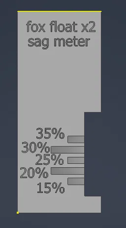 Sản phẩm được thiết kế chuyên biệt để tương thích với dòng Fox Float X2 (kích thước 205x62.5). Trên thân thước có sẵn các vạch đo từ 15% đến 35%, cho phép anh em tùy chỉnh độ nhún theo sở thích cá nhân hoặc địa hình thực tế một cách dễ dàng. Thay vì phải mang theo những dụng cụ đo phức tạp, chỉ cần in món đồ này ra và để sẵn trong túi đồ nghề, anh em đã có thể làm chủ hệ thống giảm xóc của mình ngay tại điểm xuất phát.