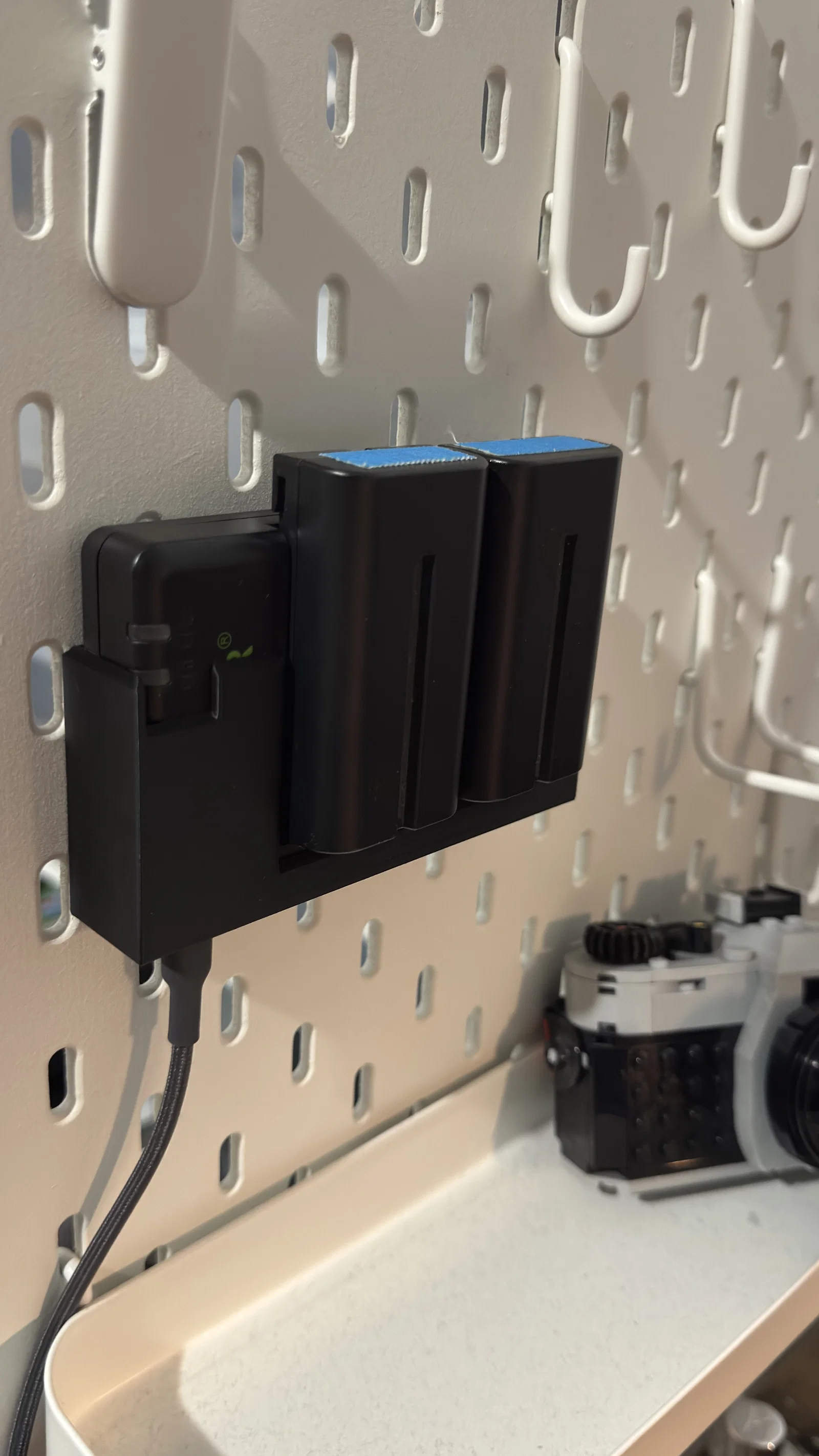 Giá treo sạc pin NEEWER NP-F cho bảng IKEA SKADIS gọn gàng