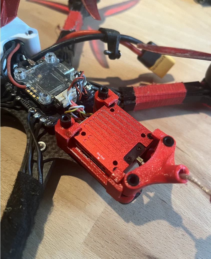 Đây là chiếc khung bảo vệ mình thiết kế cho VTX HDZero Freestyle V2 để gắn trên khung (frame) Era của itsfpv. Nó có thể dùng được với một số loại khung khác nữa. Khung bảo vệ này tương thích với các giá đỡ ăng-ten hoặc GPS ở phía sau máy. Mình chia thiết kế thành hai phần để các bạn dễ dàng lắp đặt hơn: chỉ cần lắp một phần vào, trượt VTX vào trong rồi lắp nốt phần còn lại là xong.