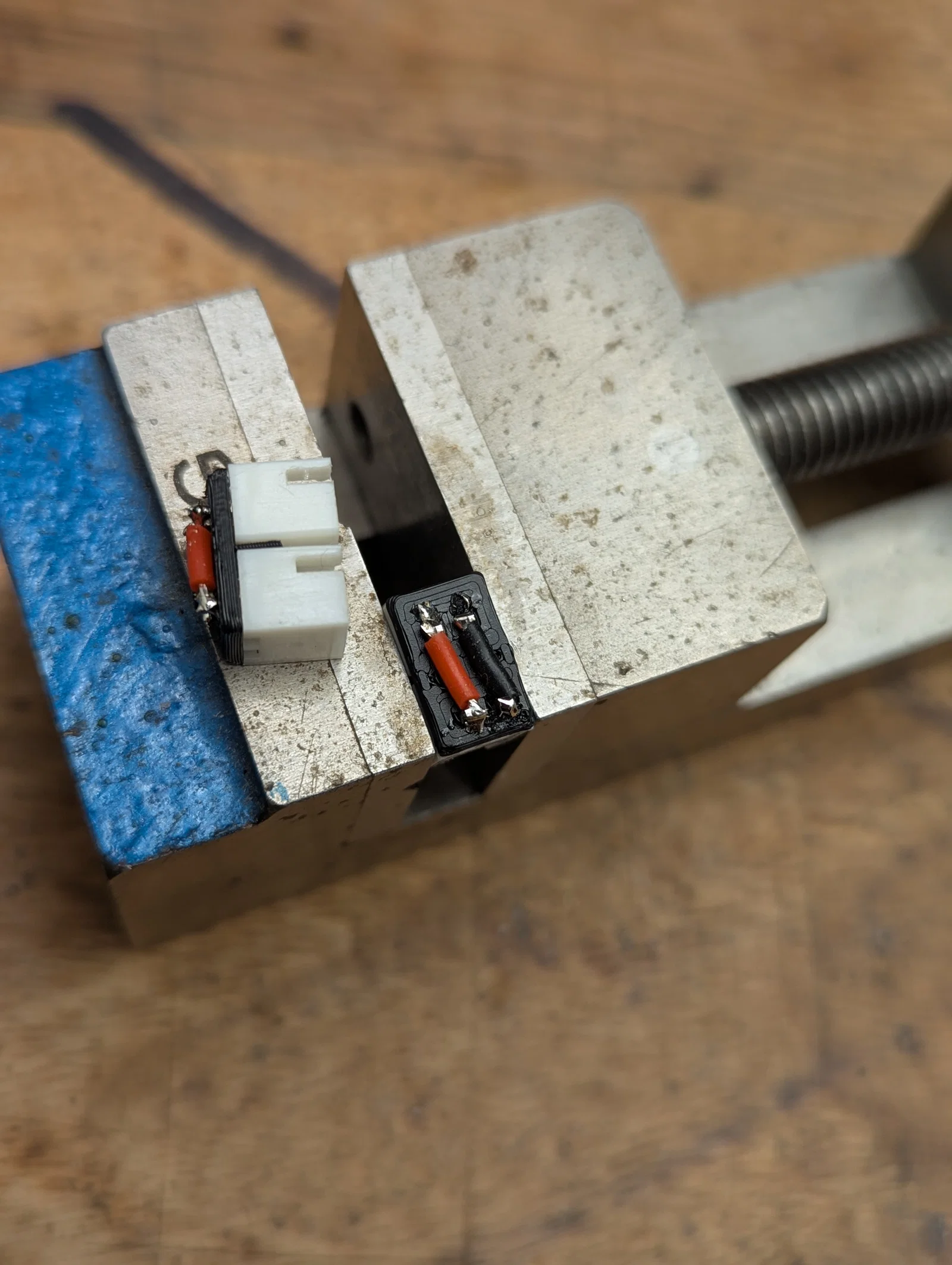Dựa trên bộ chia JST của @Esoterical_306854. Cách lắp ráp y hệt, nhưng mình khuyên bạn không nên dùng keo nến để cố định phần giá đỡ nhé. Dùng keo 502 sẽ ổn hơn vì nó giúp dán phần giá đỡ vào vỏ ngoài (keo không ăn lắm trên nhựa của đầu JST [chắc là Nylon?]).