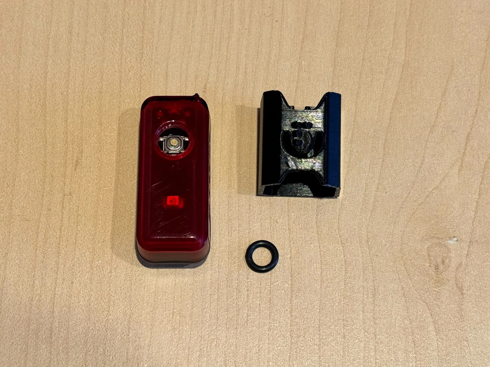 Để lắp đặt chuẩn nhất, tác giả khuyến nghị bạn nên lót thêm một vòng đệm cao su (O-ring) kích thước 8 mm (độ dày 1.5 mm) quanh nút bấm trước khi đóng vỏ để giúp đèn hạn chế nước văng trực tiếp vào bên trong. Phần vỏ cũng được thiết kế một khe thoát nước nhỏ để dẫn nước ra xa khu vực nút bấm. Khi nghe tiếng "tạch" là bạn đã lắp đúng vị trí.