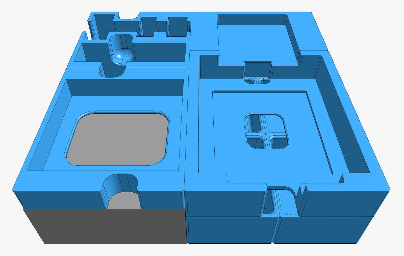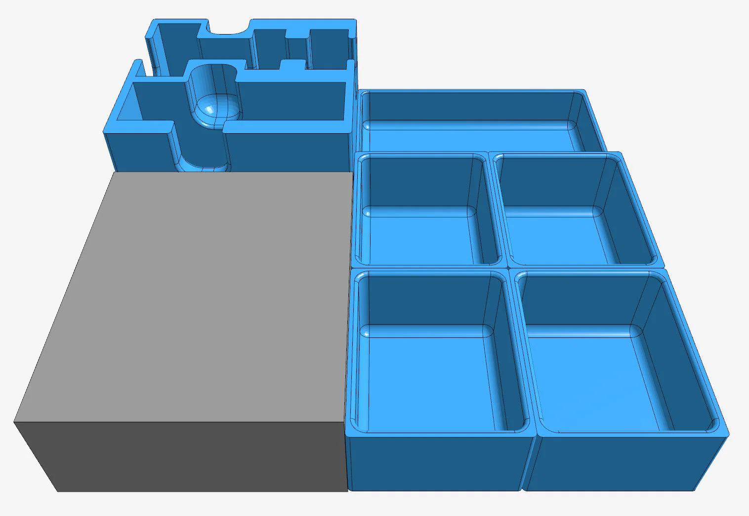 • management_boards_tray.stl: Khay được thiết kế để đặt cạnh warehouse_boards_tray, hỗ trợ phần nhô ra của 6 bảng Management Boards.