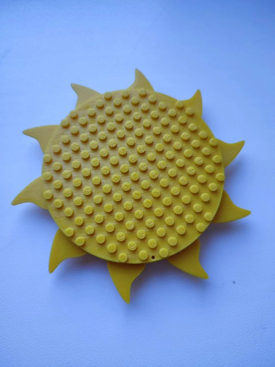 Khi xoay, các "cánh mặt trời" sẽ nhẹ nhàng mở rộng ra và thu lại. Mẫu thiết kế này ban đầu được tạo ra để làm núm điều khiển xúc giác cho biến trở (potentiometer), dùng trong các hệ thống đèn LED.