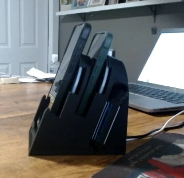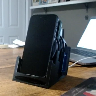 Bạn làm gì khi được cấp thêm điện thoại công việc mà vẫn cần sạc cả hai máy qua đêm, trong khi cái bàn đầu giường đã quá chật chội rồi? Giải pháp là hãy lấy một thiết kế mà bạn đã dùng trên bàn làm việc suốt bao năm nay rồi thêm vào một vị trí sạc thứ hai. Cứ tưởng tượng như đường đua xe trượt lòng máng đôi, nhưng là cho nhu cầu sạc không dây của bạn.
