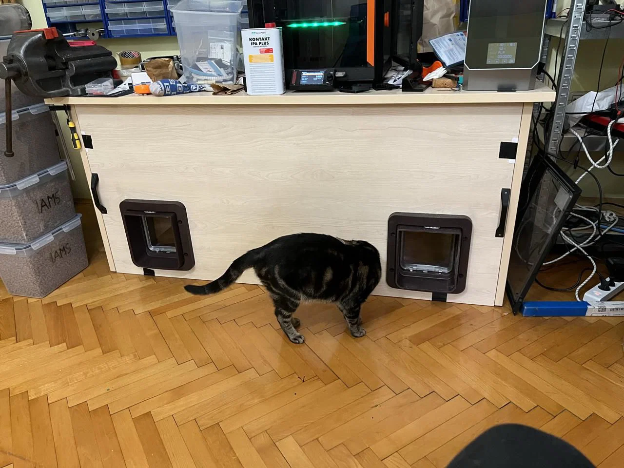 Đây là bộ ngàm (clip) và chốt (peg) dạng khớp nối (snap-on) dành cho các tấm ốp giả, hoặc trong trường hợp của mình là để cố định tấm ván ép che chắn bàn máy in 3D và làm khu vực ăn uống riêng cho mèo. Mình dùng 4 bộ này để giữ tấm ván dày 19mm có diện tích khoảng 1.2 mét vuông mà vẫn rất chắc chắn!
