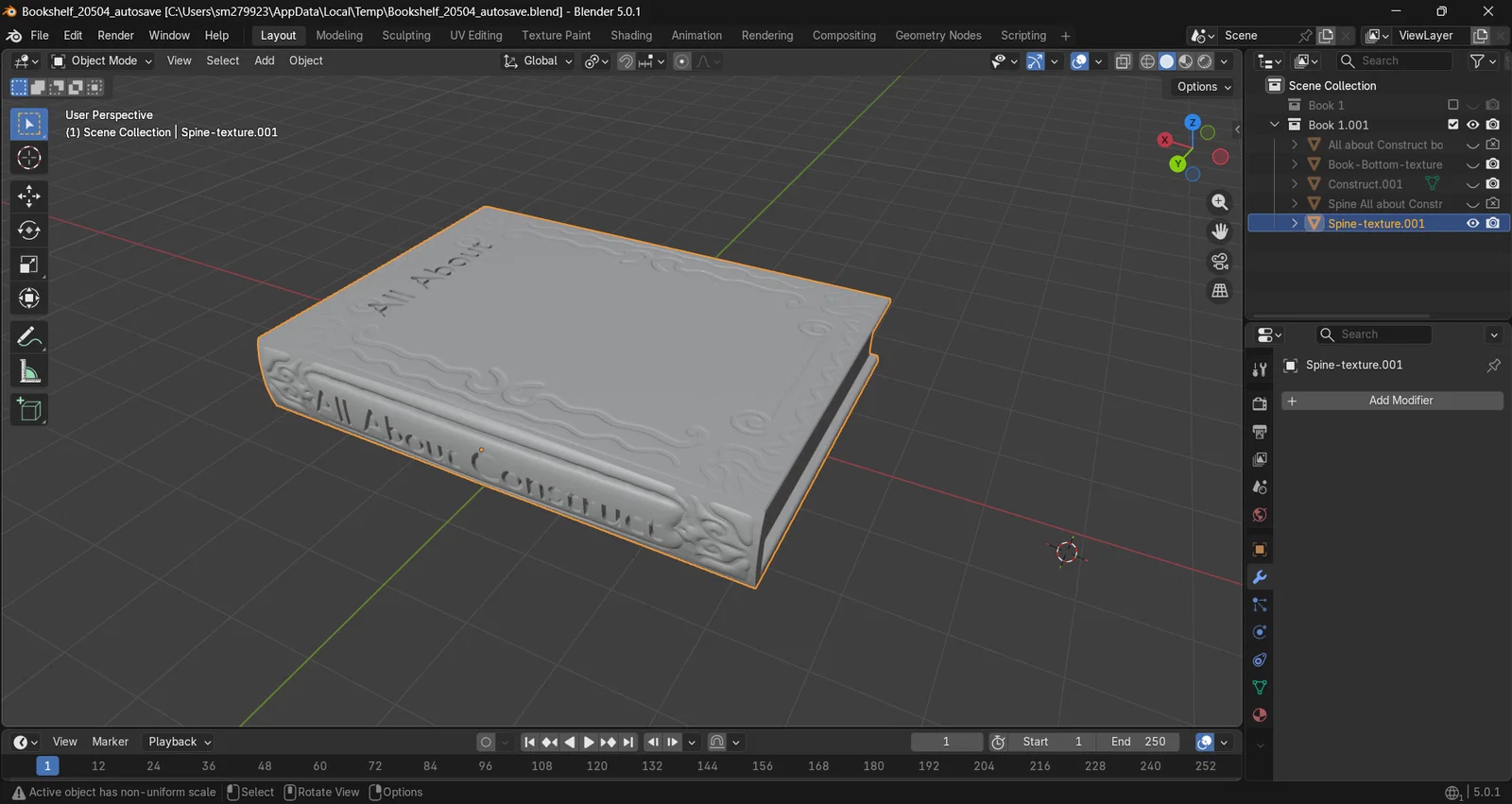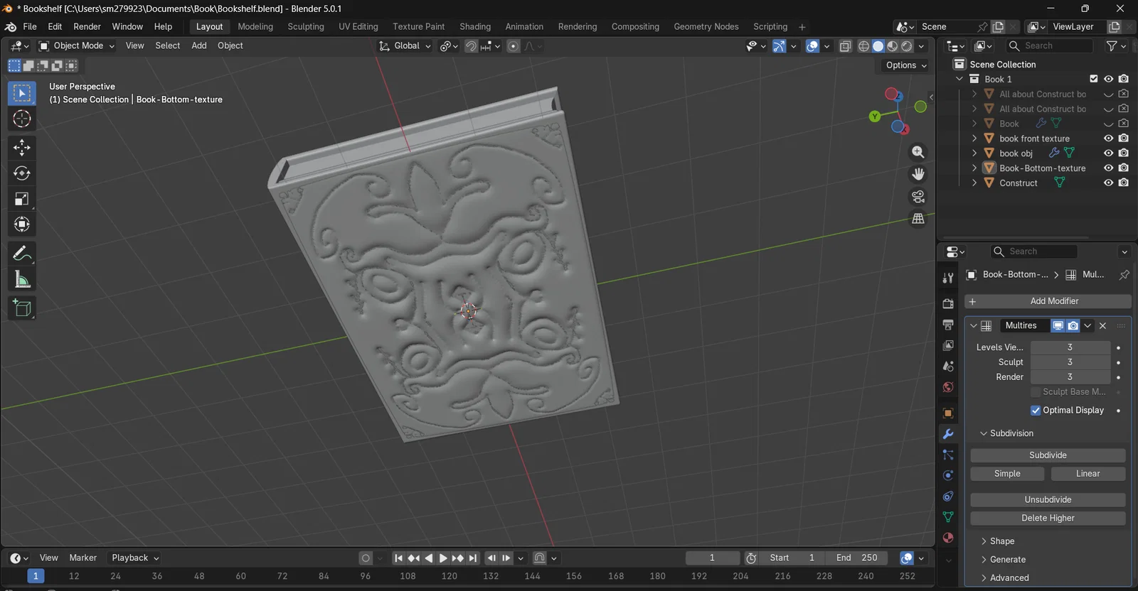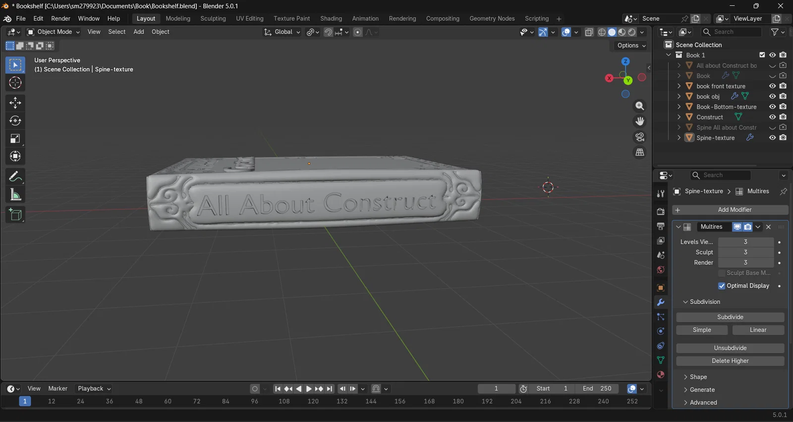Mình đang làm một cuốn sách trong Blender. Việc tạo ra một cuốn sách bằng Blender sẽ giúp mình rèn luyện kỹ năng dựng hình 3D nhờ vào phần xử lý kết cấu (textures). Mình dự định sẽ học thêm về kỹ thuật masking, nhìn thì có vẻ đơn giản nhưng cái khó là phải vẽ trên trackpad.