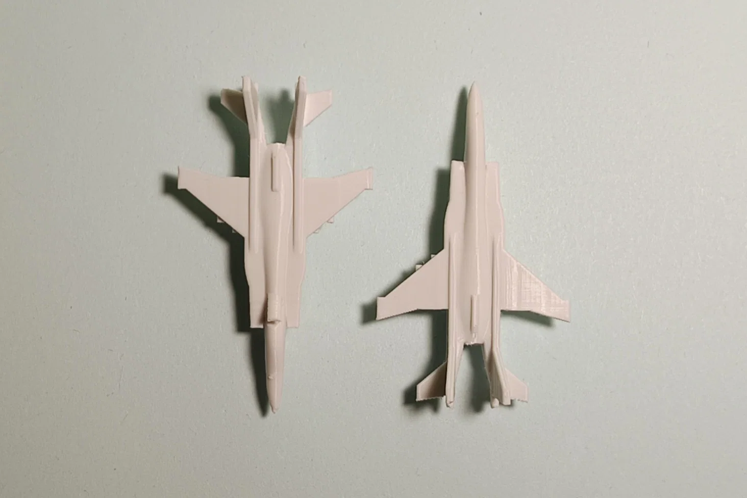 - Tôi khuyến cáo KHÔNG nên thu nhỏ (scale down) mô hình, vì một số bộ phận (hốc hút gió, động cơ, mũi máy bay) có thể bị biến dạng hoặc không in được do quá mỏng so với phần mềm cắt lớp (slicer) và máy in. Tôi cũng không đảm bảo kết quả tốt nếu bạn phóng to mô hình.