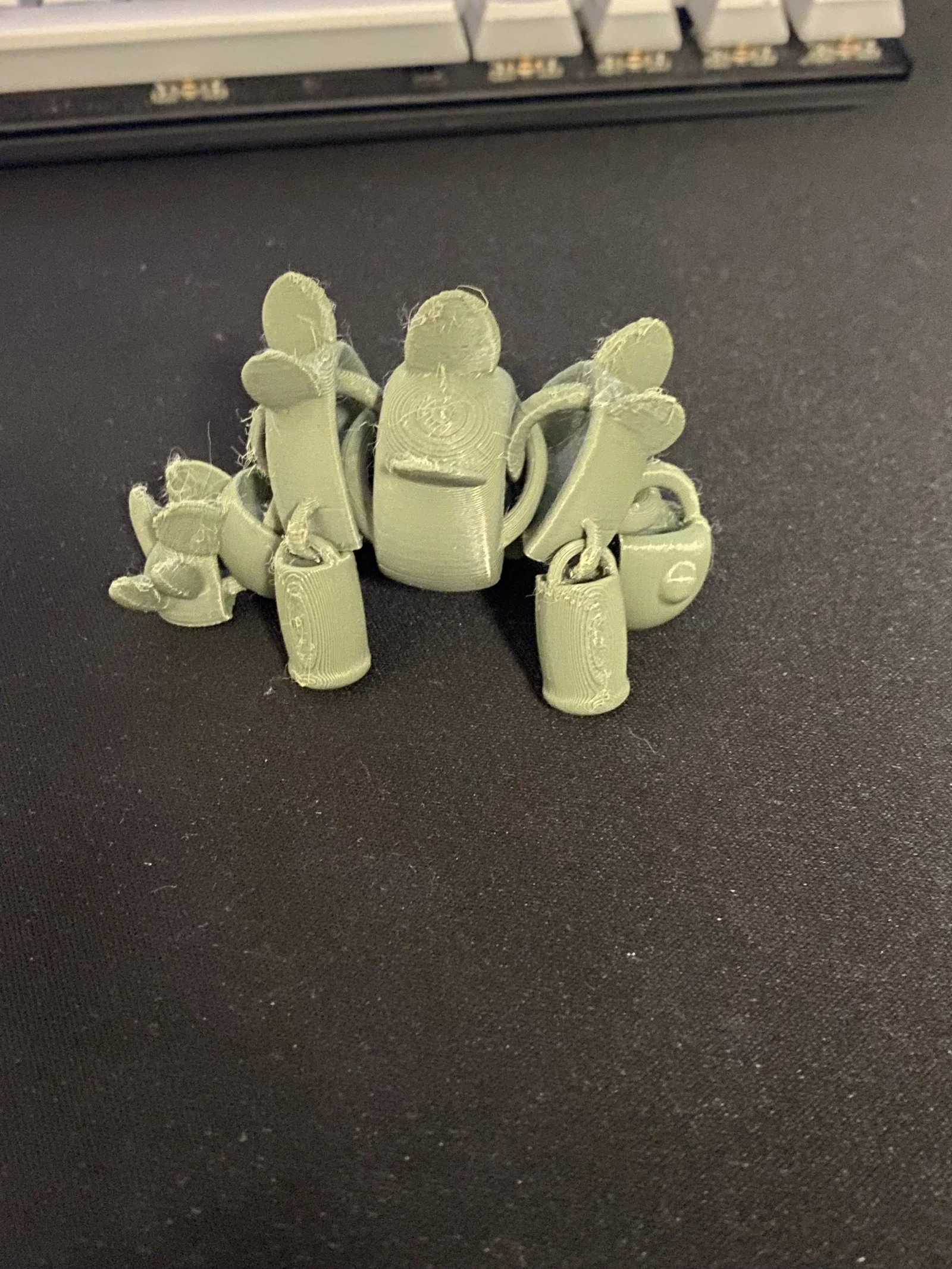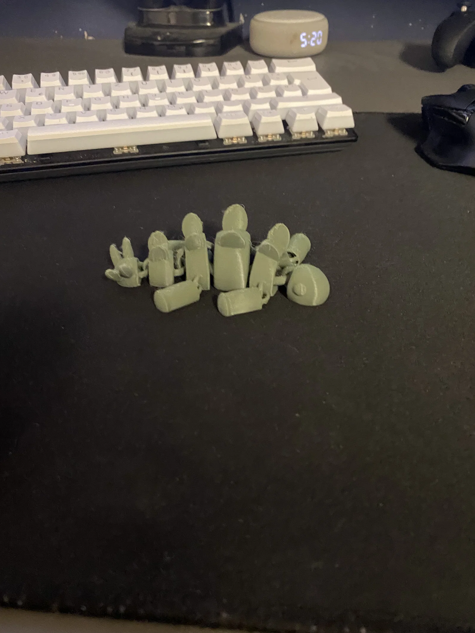 • Vật liệu đề xuất: Nên sử dụng PLA để có độ cứng cáp và bề mặt in đẹp, hoặc PETG nếu bạn muốn mô hình bền bỉ và chịu lực tốt hơn ở các khớp.