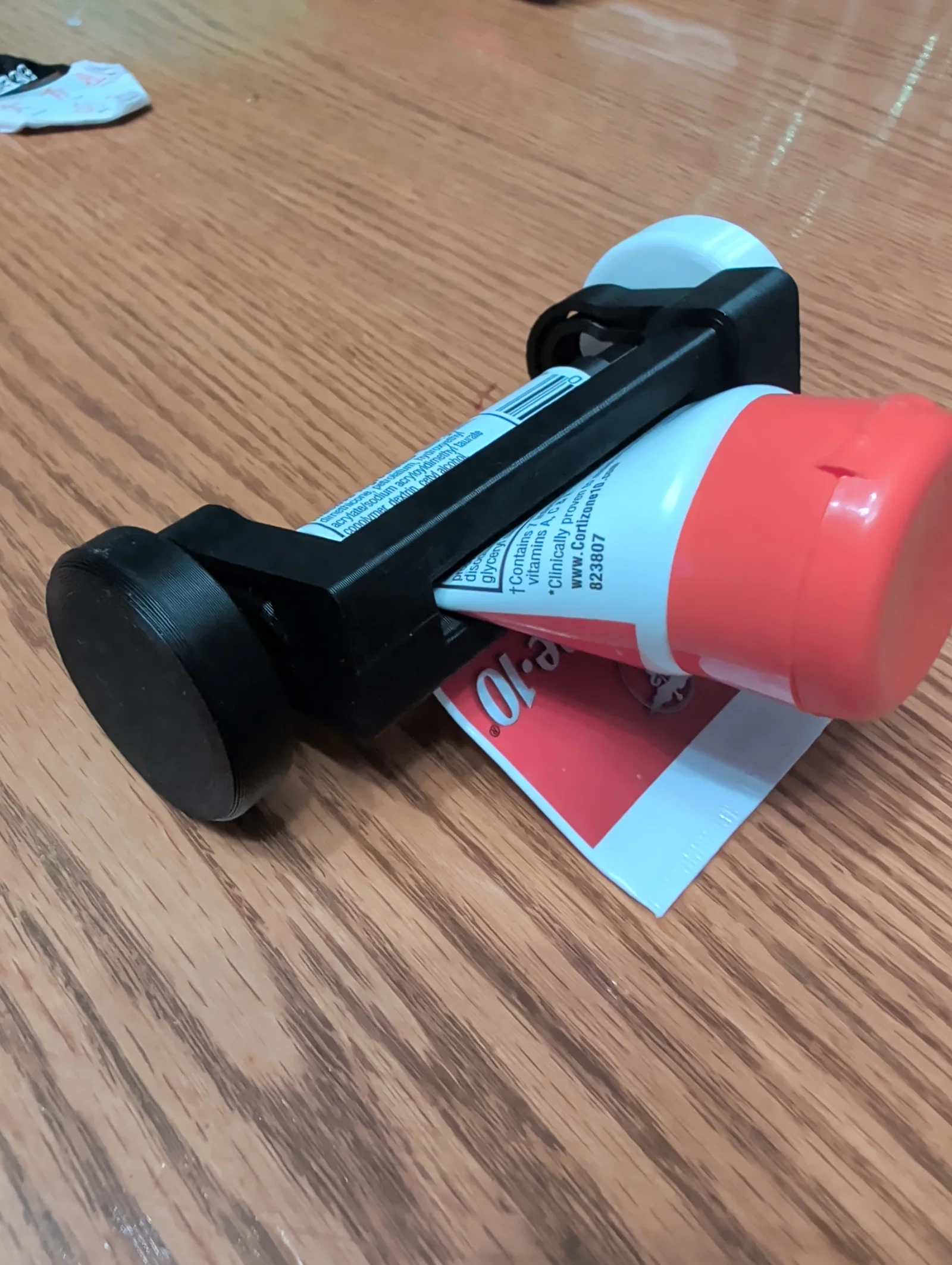 Vì không hài lòng với các mẫu hiện có, tôi đã tự tay thiết kế dụng cụ nặn kem đánh răng này. Sản phẩm gồm hai chi tiết: một phần để kẹp và một phần để cuộn, giúp khóa chặt kem khi sử dụng. Bạn có thể dùng Slicer để điều chỉnh kích thước tùy ý.