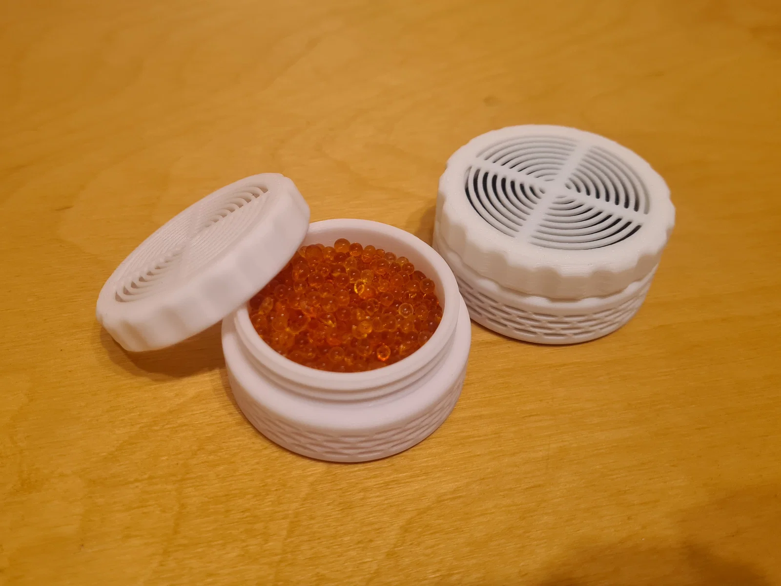 Hộp đựng hạt silica gel đơn giản, dễ in, giúp bảo quản vật liệu in của bạn khỏi ẩm mốc. Thiết kế tiện lợi, dễ nạp lại hạt, lý tưởng để dùng kèm các loại hạt silica gel đổi màu tái sử dụng.