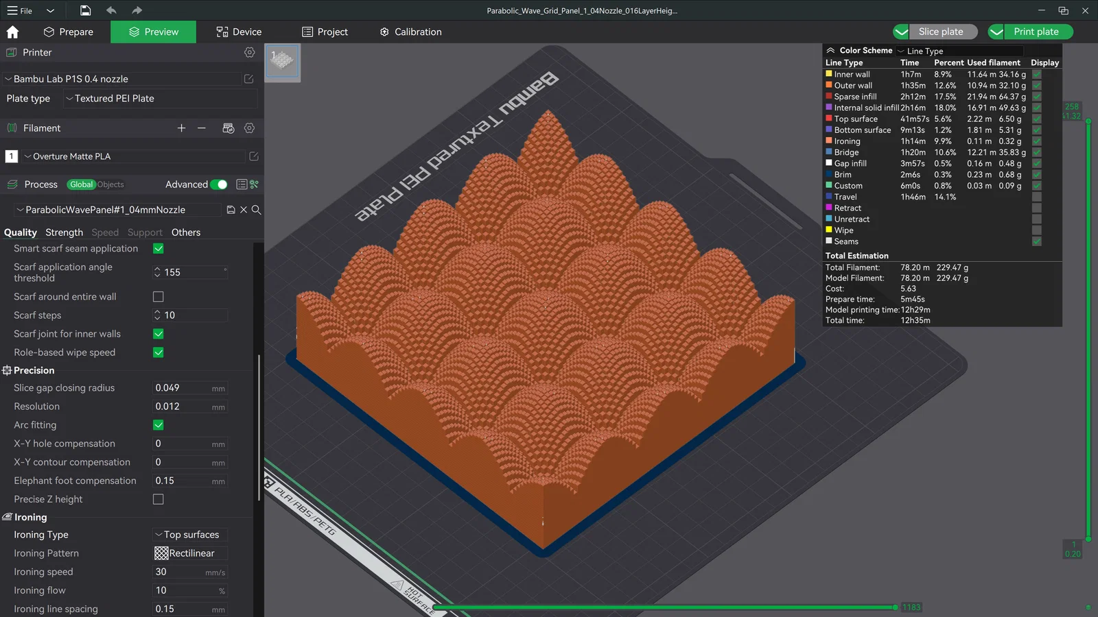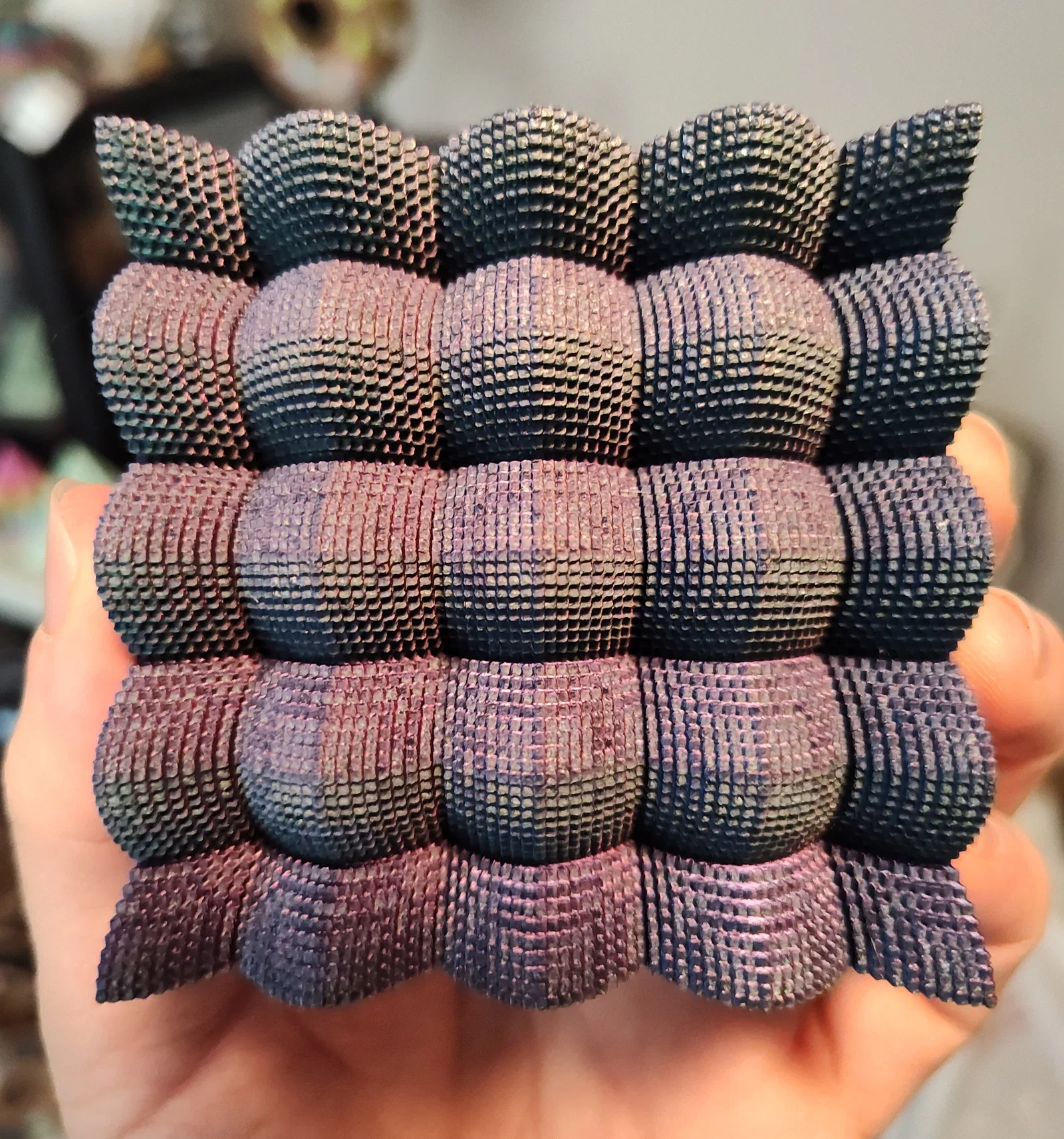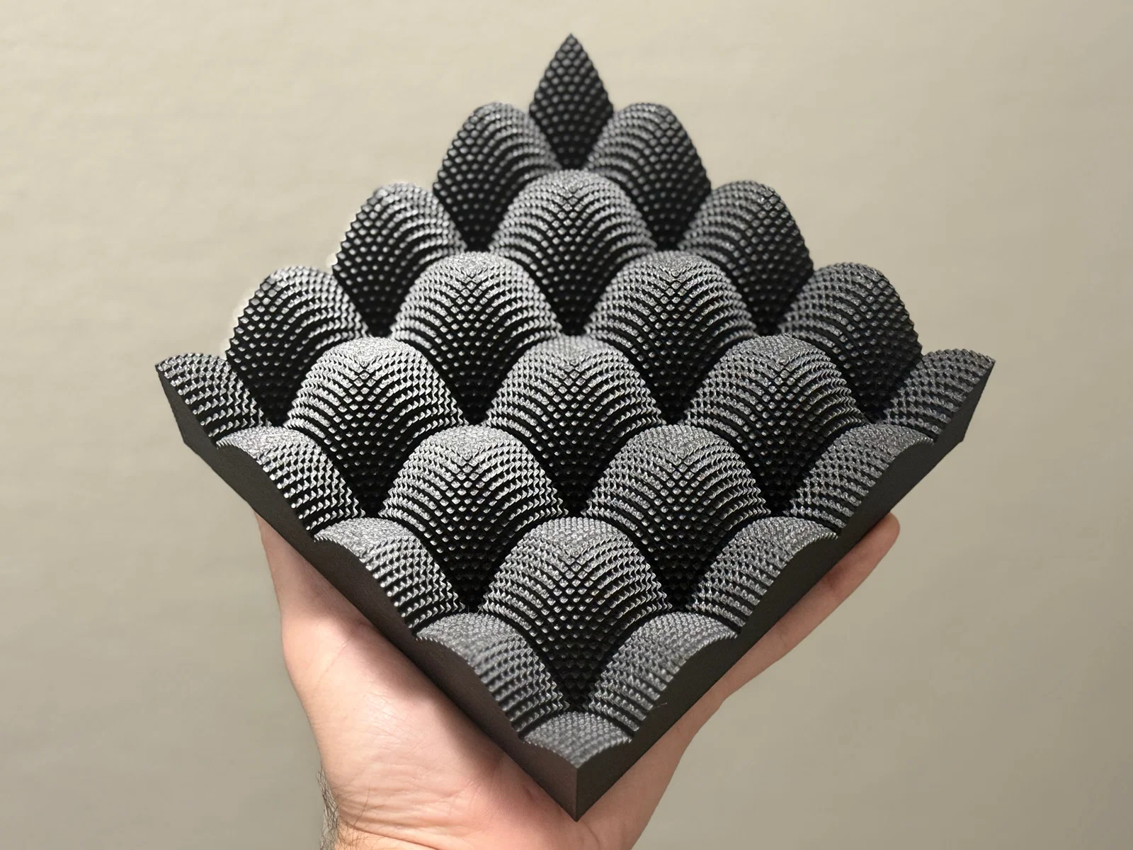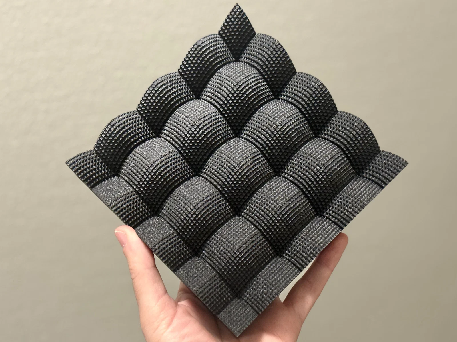Parabolic Wave Grid Panel #1 nổi bật với họa tiết sóng parabol cực kỳ tinh xảo, được tạo ra bằng cách đùn các khối vuông ở những độ cao khác nhau. Mẫu thiết kế đa năng này nhìn cực kỳ bắt mắt với nhiều loại chất liệu, từ filament tam sắc (tricolor), nhựa đổi màu (color-shift) cho đến màu đen nhám (matte black). Sự tương tác của ánh sáng trên các bề mặt được đùn tạo nên hiệu ứng đổ bóng và chiều sâu vô cùng ấn tượng, rất thích hợp để làm tấm ốp trang trí, tranh treo tường và nhiều ứng dụng khác!