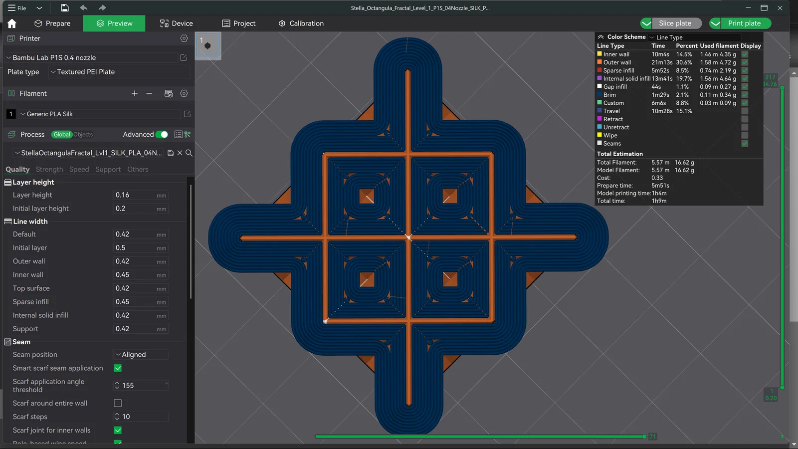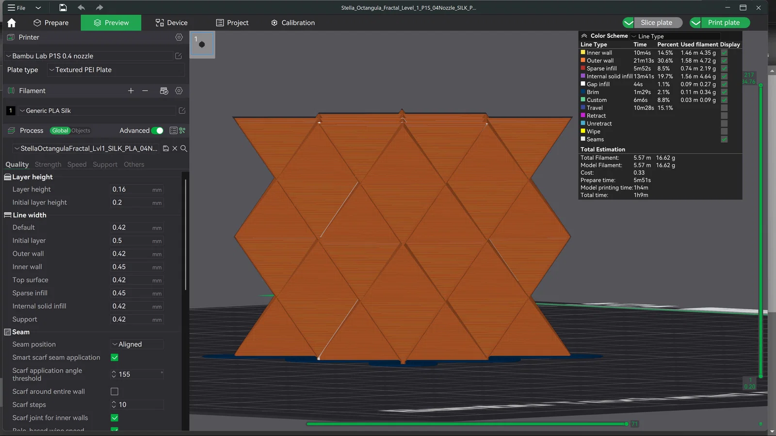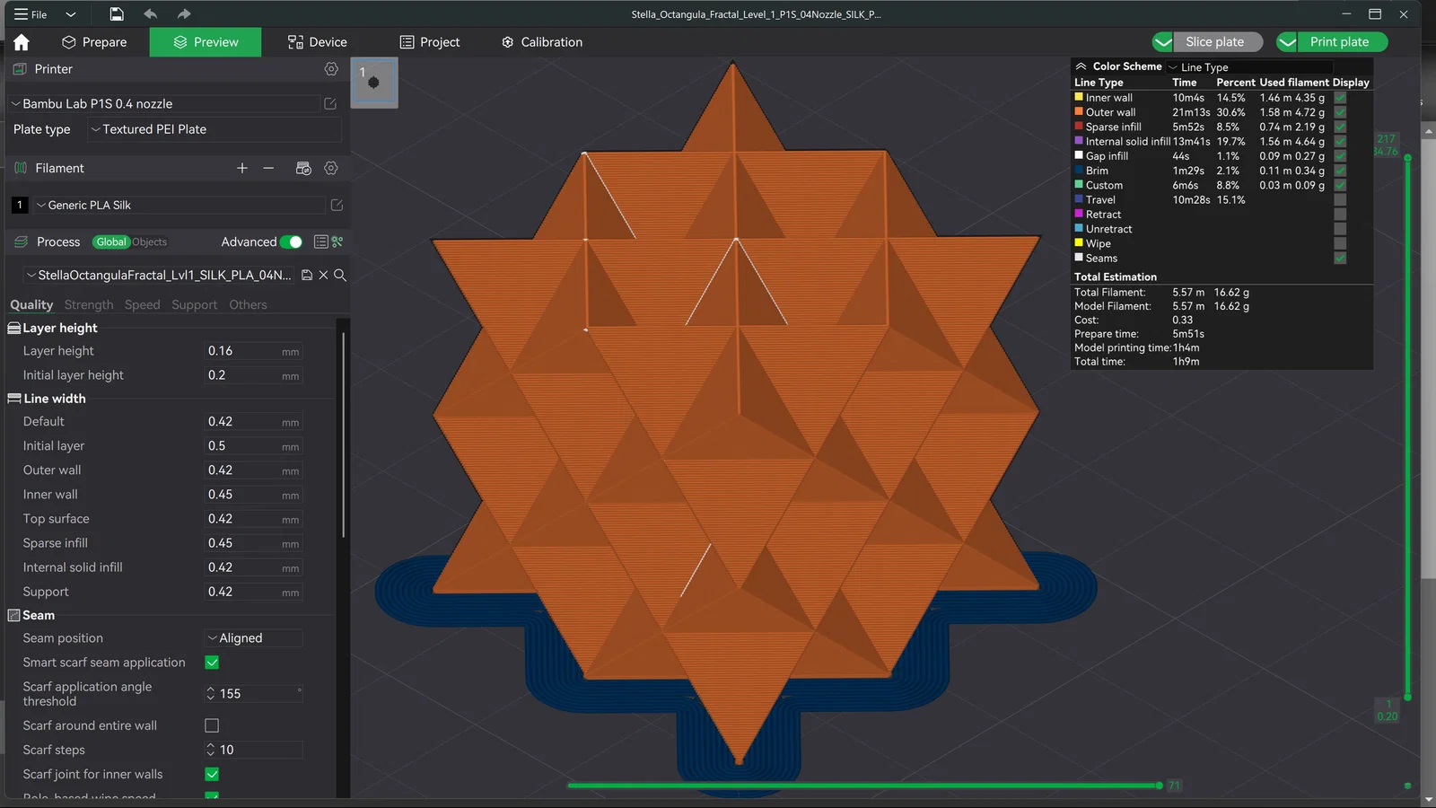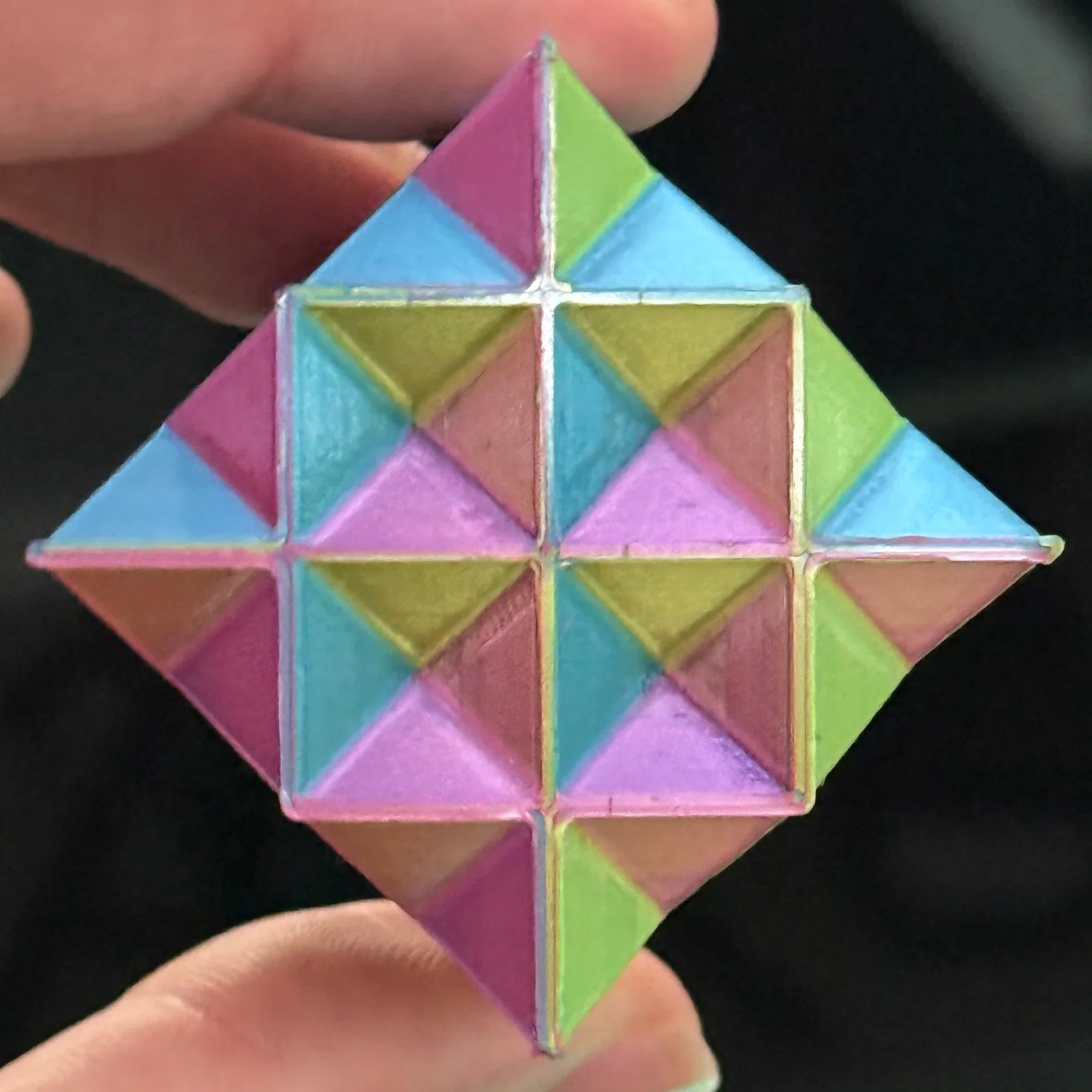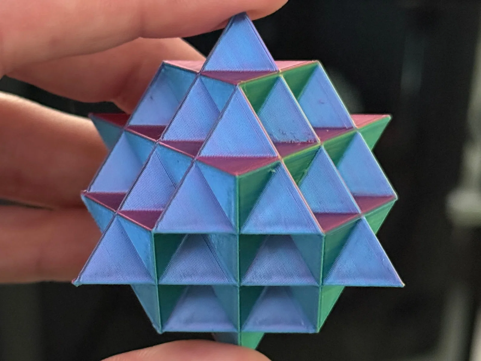 Khám phá mô hình Stella Octangula Fractal Cấp độ 1, thiết kế hình học đẹp mắt, tối ưu để in 3D nhanh chóng mà không cần support. Sản phẩm trông cực kỳ ấn tượng khi kết hợp với nhựa in tricolor, hoàn hảo để trang trí.