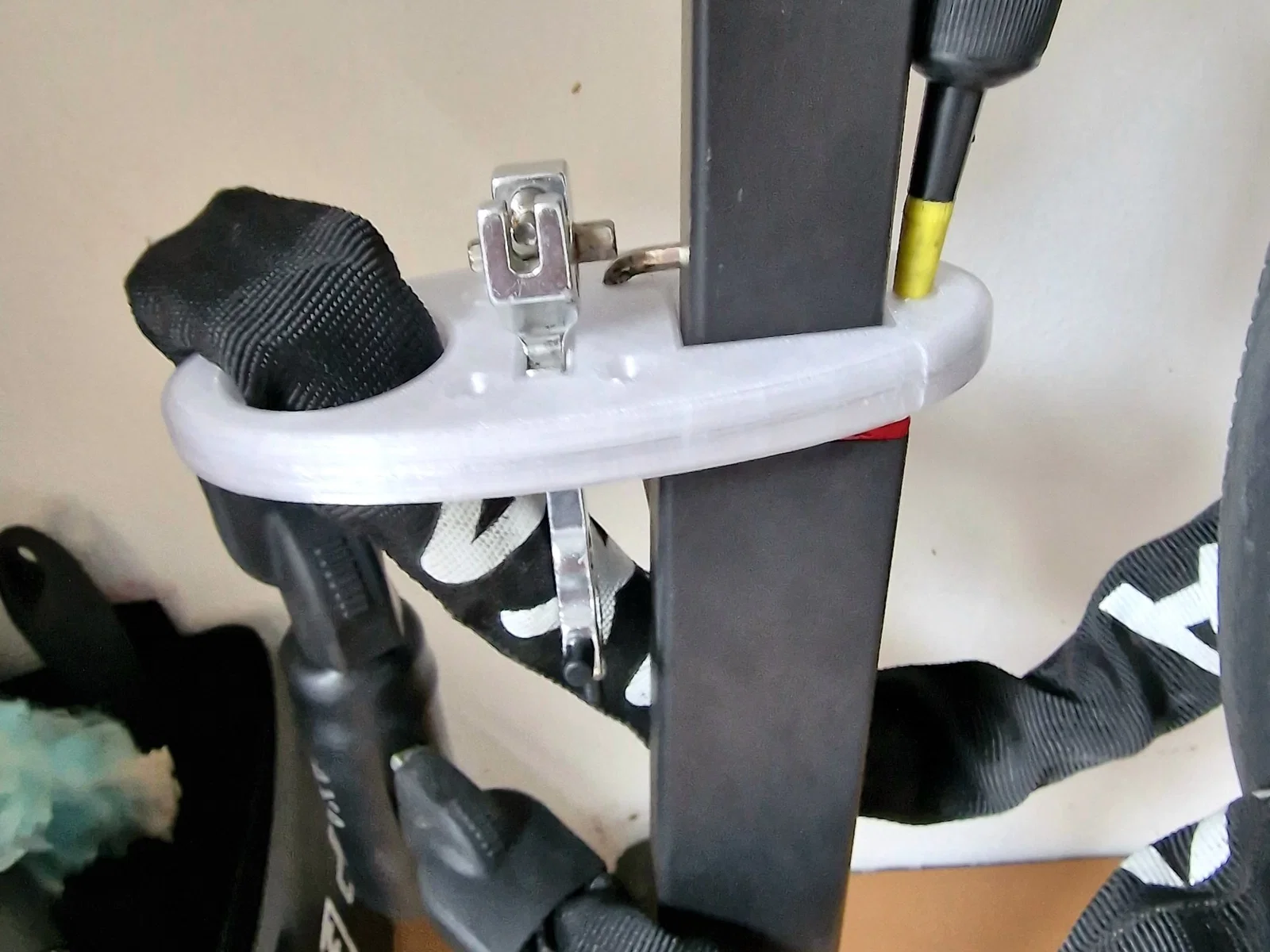 Giá đỡ để giữ khóa xe đạp trên giá xe đạp thẳng đứng của tôi. Các lỗ bổ sung cho phép thêm chìa khóa đa năng hoặc dụng cụ đa năng.