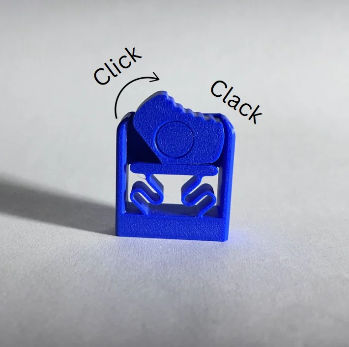 Sản phẩm được thiết kế với cấu trúc tối giản nhưng vô cùng thông minh, cho phép in 3D toàn bộ khối mà không cần lắp ráp phức tạp. Chỉ cần một vài thao tác in đơn giản, bạn đã có ngay một chiếc công tắc nhỏ xinh để bỏ túi mang theo bất cứ đâu. Cơ chế bên trong được chế tạo đặc biệt để tạo ra âm thanh Click-Clack vui tai, chắc chắn sẽ khiến bạn không thể ngừng tay khi đã cầm vào.