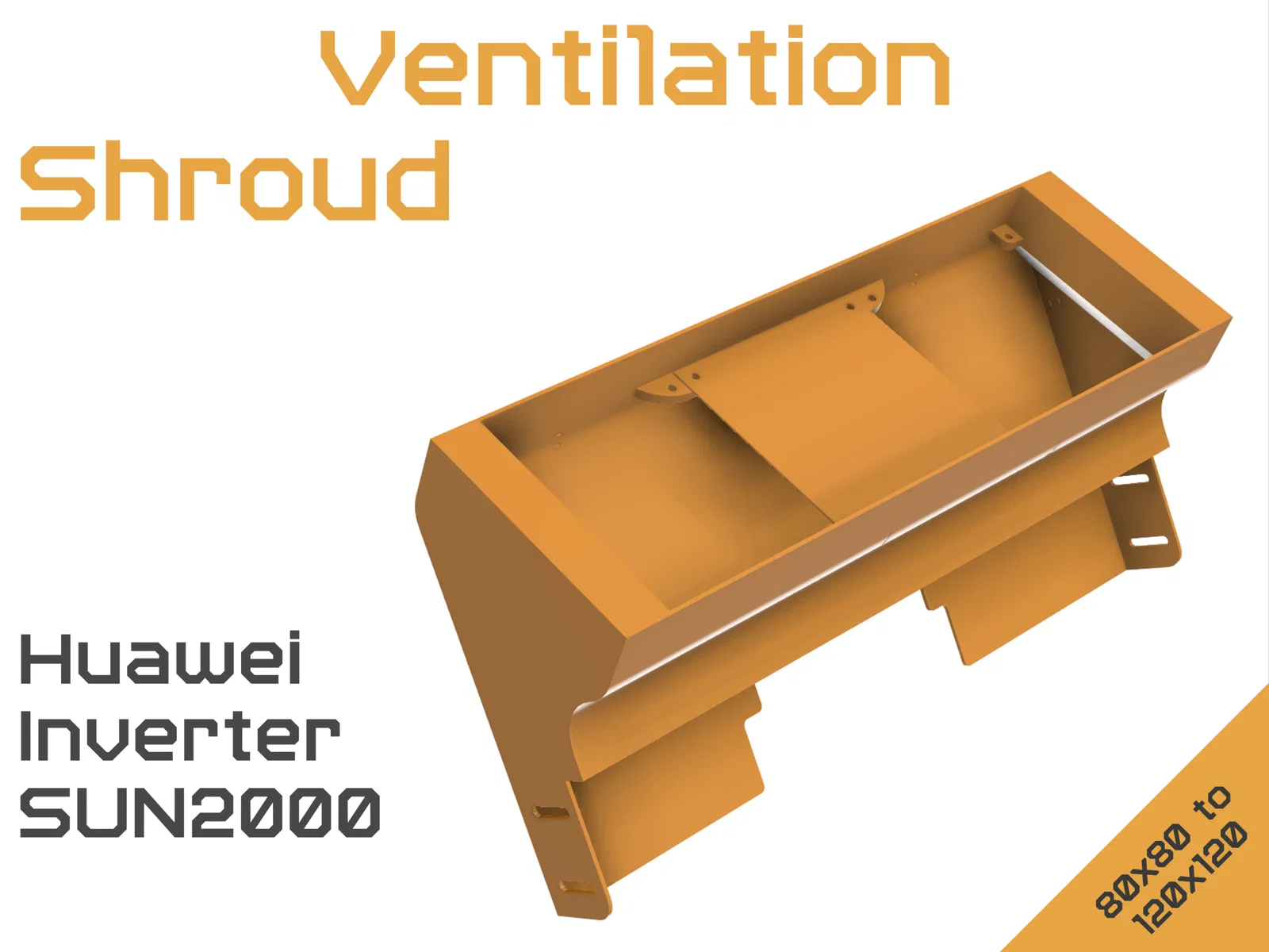 Ống dẫn gió giúp tản nhiệt cho biến tần Huawei SUN2000 của bạn. Tệp thiết kế đi kèm hỗ trợ quạt 80x80mm và 120x120mm. Có sẵn file STL và STEP để bạn dễ dàng in ấn và lắp đặt ngay cho thiết bị của mình.