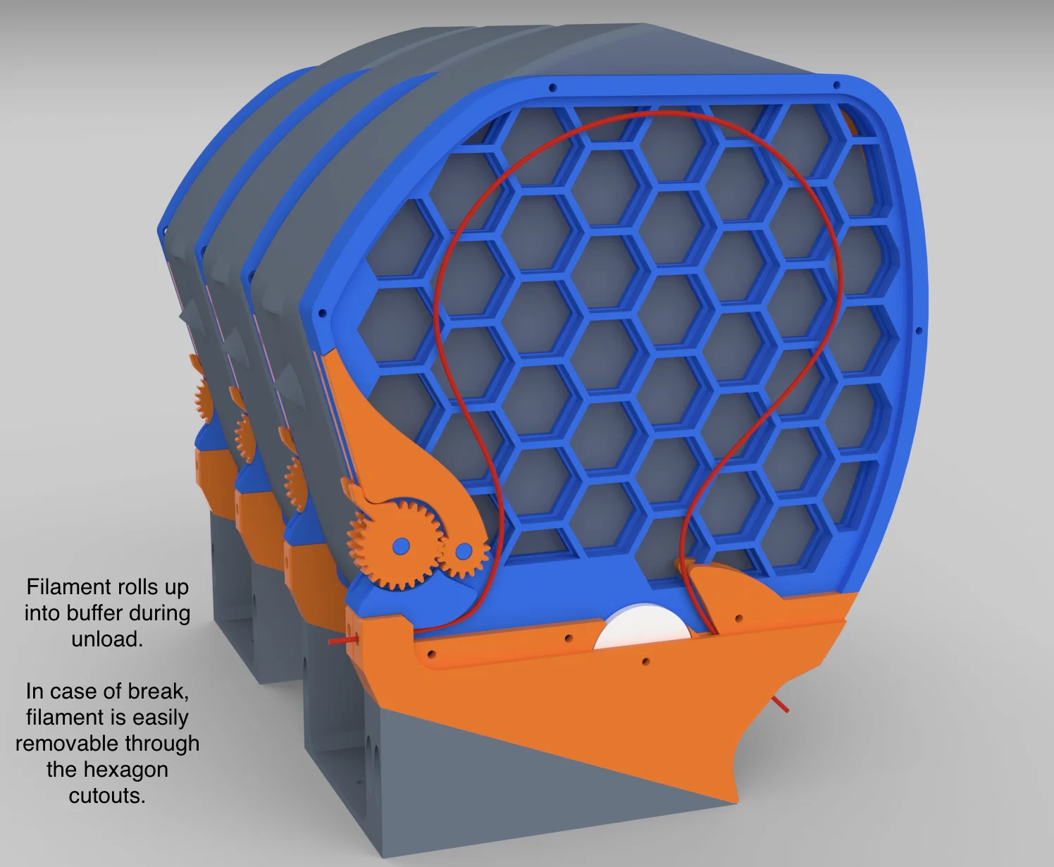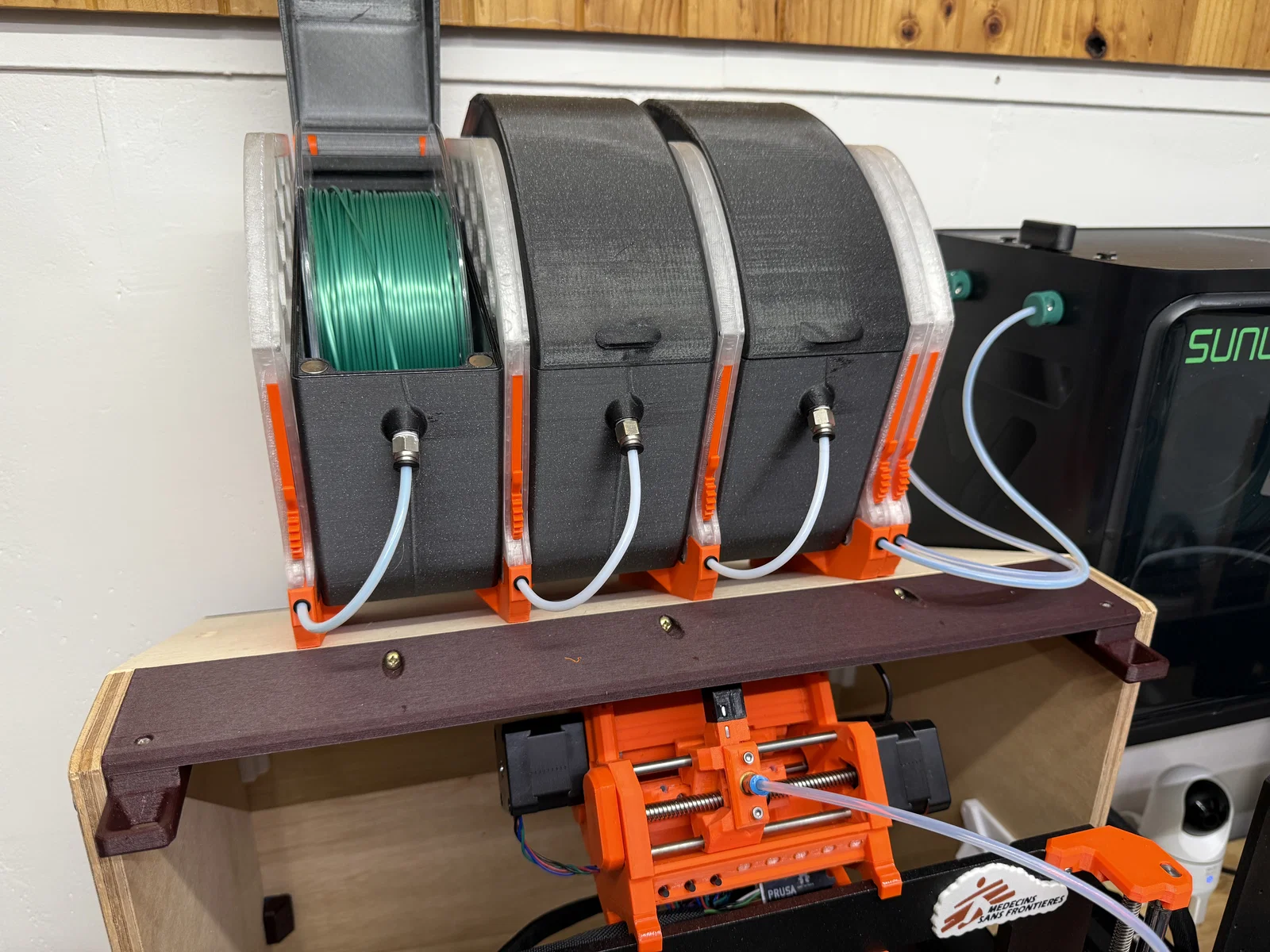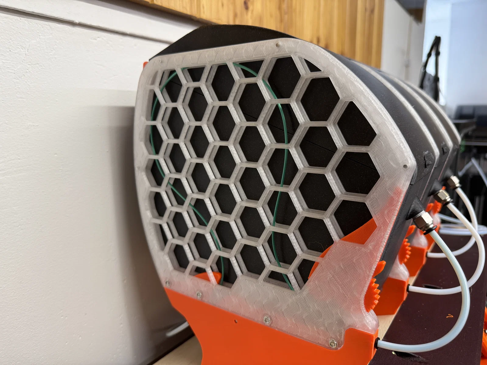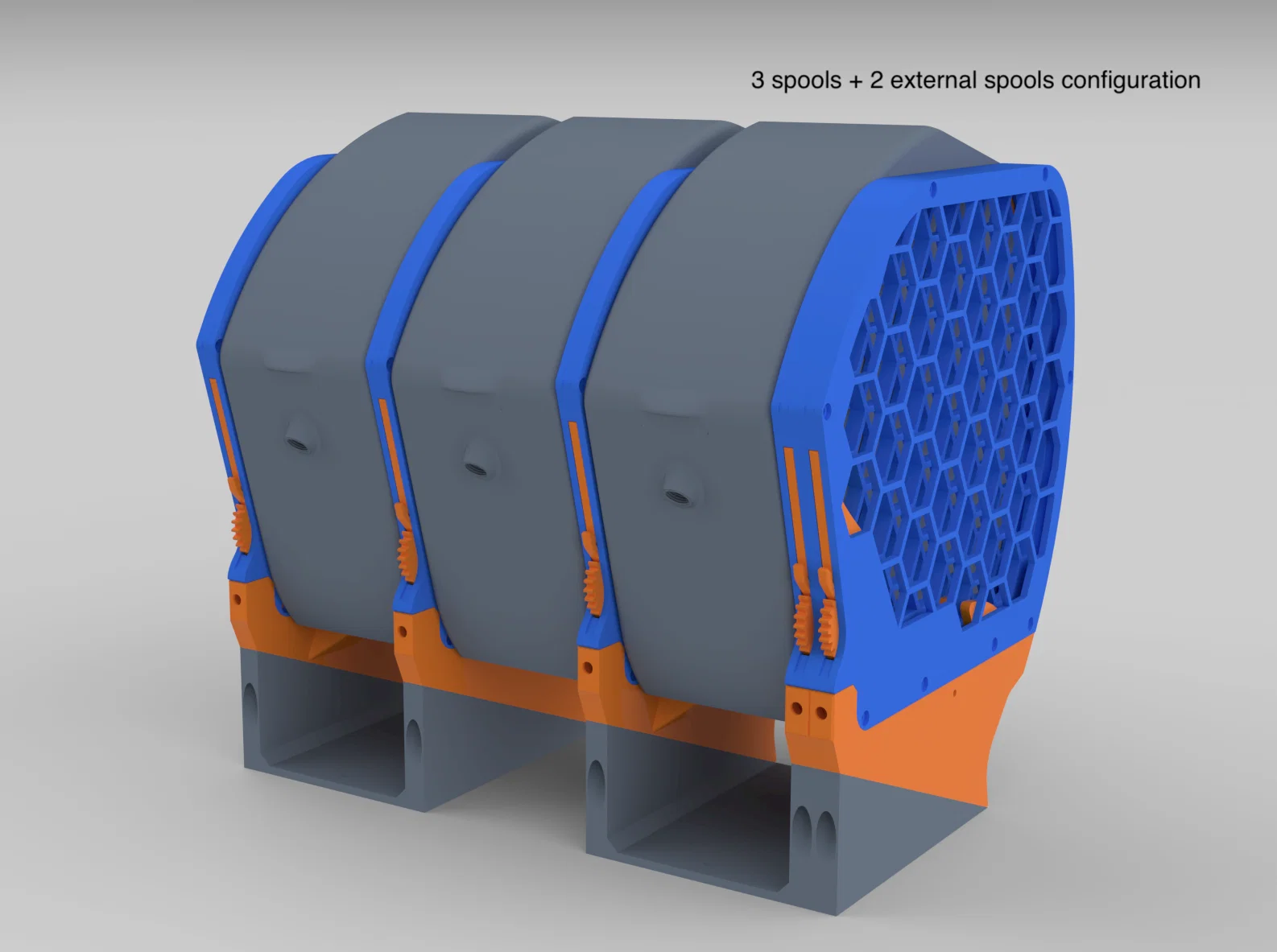 Hệ thống hộp sấy và buffer sợi nhựa The Shark đã trải qua rất nhiều phiên bản, và cuối cùng thì mình có thể nói là nó đã “hoàn thiện”. Tên gọi này bắt nguồn từ bộ dẫn sợi nhựa hình vây cá mập, giúp việc nạp sợi nhựa trở nên cực kỳ dễ dàng.