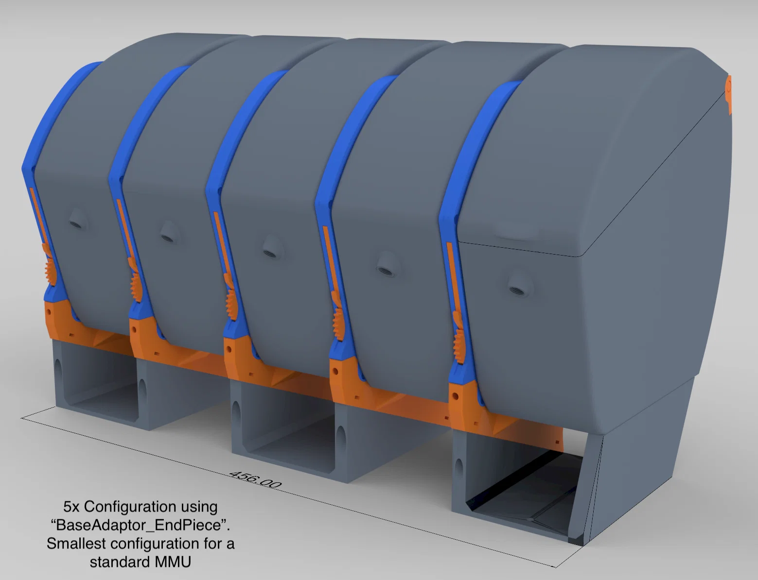 Bộ đế chính được thiết kế để đặt trên khung máy của mình với góc nghiêng 22º, vì vậy mình đã thêm các bộ chuyển đổi (adaptor) để bạn có thể bắt vít hoặc cố định hệ thống lên bề mặt bất kỳ.