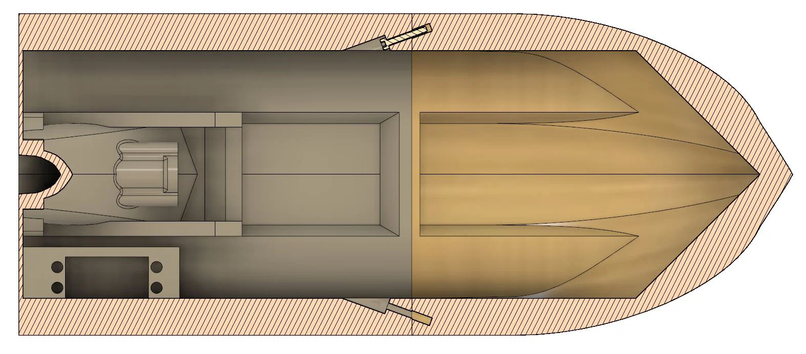 Hiện đã có sẵn phần mở rộng thân tàu để tăng thêm chiều dài cho thuyền.