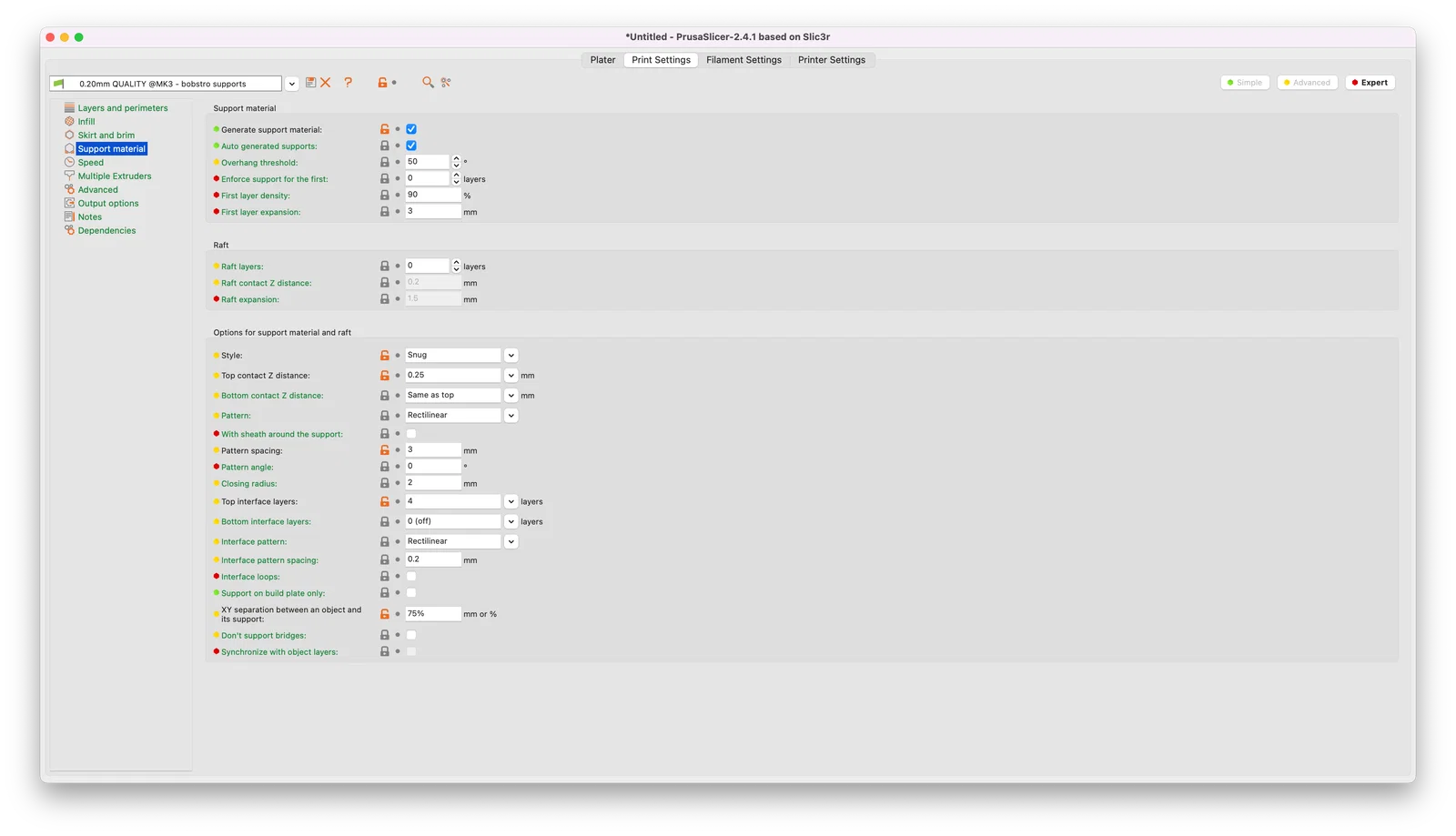 • Cần hỗ trợ (supports) ở mọi vị trí; mình dùng thiết lập hỗ trợ nổi tiếng của bobstro (xem ảnh chụp màn hình).