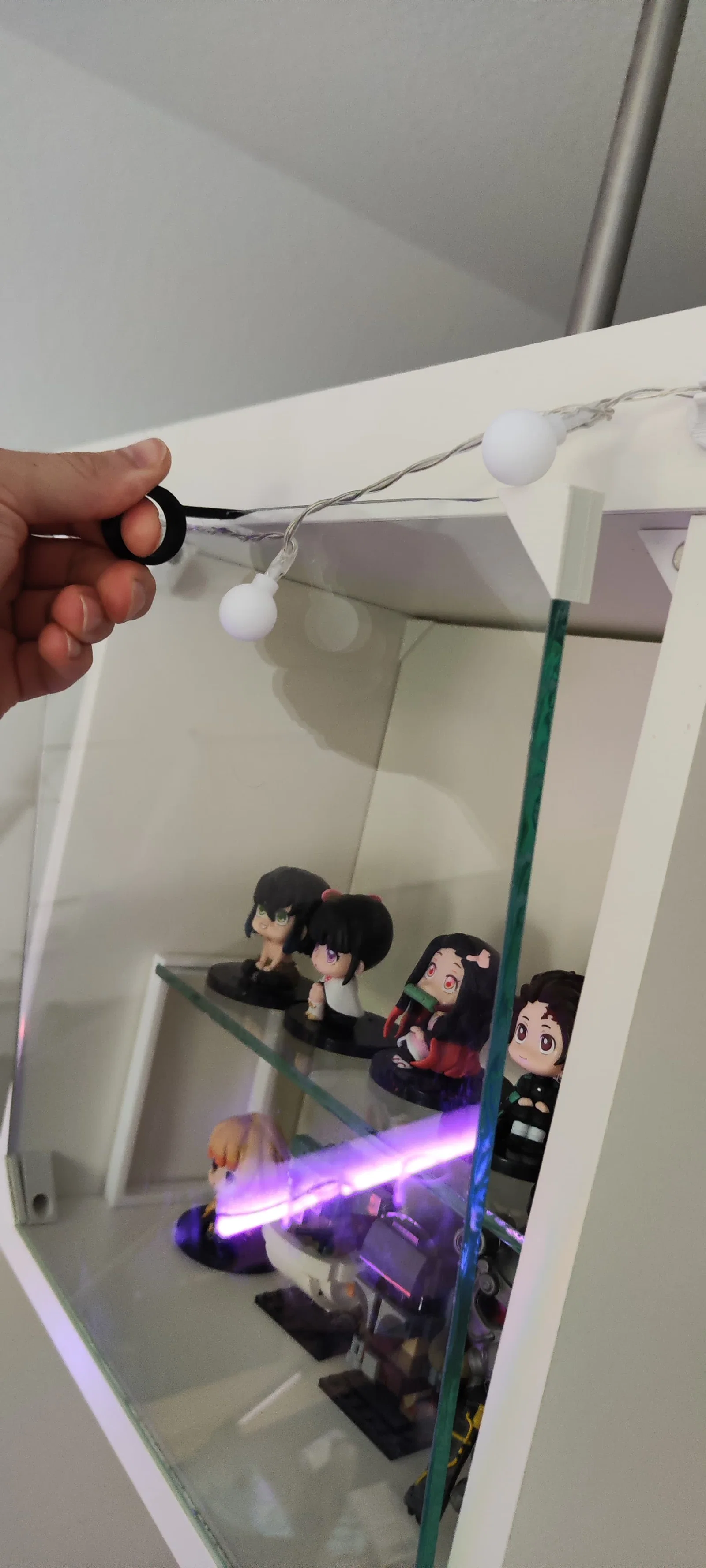Mình cực kỳ muốn có một mặt kính cho chiếc kệ Kallax. Vì giải pháp từ IKEA không hoàn toàn đúng ý mình nên mình đã tự thiết kế riêng bộ này. Các tấm kính được giữ cố định bằng nam châm và có thể tháo ra dễ dàng nhờ một chiếc móc in 3D nhỏ gọn.