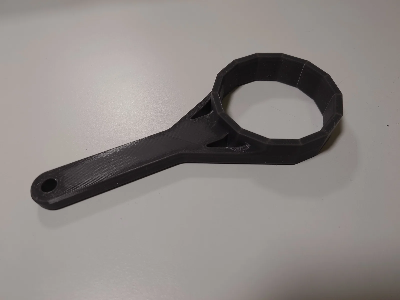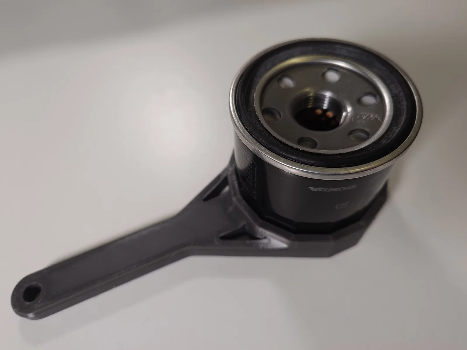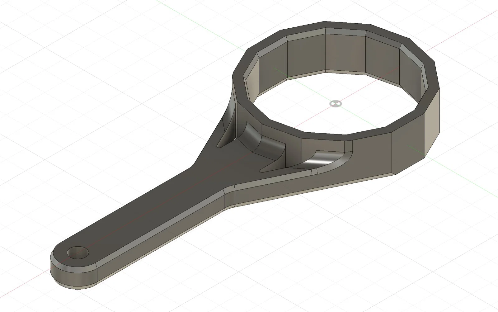 Trên dòng xe Honda CBR 600, lọc nhớt bị che khuất bởi cổ pô nên các loại cờ lê lọc nhớt thông thường không thể dùng được. Mình đã thiết kế một chiếc cờ lê độ dày thấp với cần gạt nhỏ gọn. Dụng cụ này ôm khít lọc nhớt, không bị rơ và có phần tay cầm được gia cố chắc chắn.