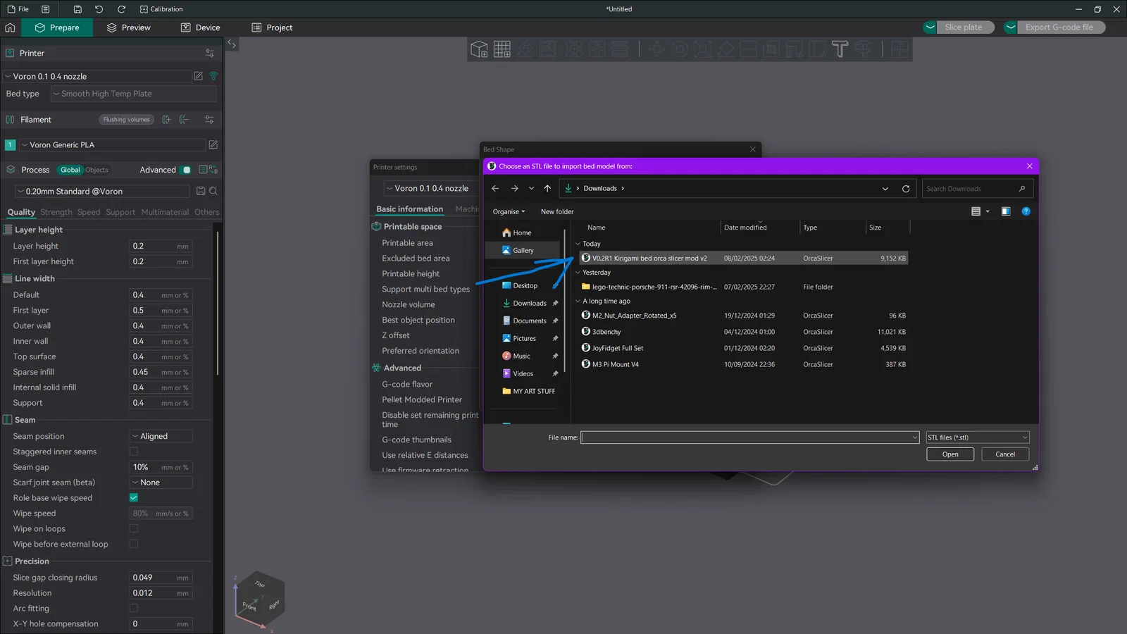 Hướng dẫn cài đặt Voron V0 Kirigami Build Plate trong ORCASLICER