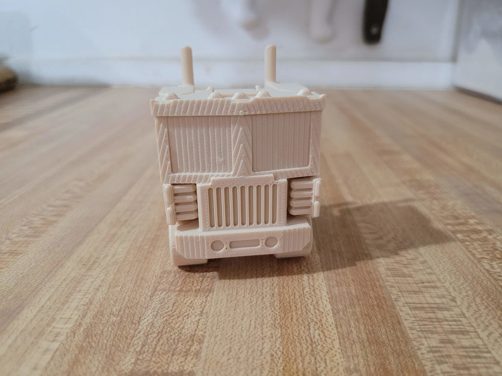 Mô hình xe tải biến hình Robot (Print in Place). Lấy cảm hứng từ nhân vật trong phim Transformers. Được in bằng nhựa PLA, độ dày lớp in 0.2mm, đầu phun 0.4mm, độ lấp đầy 10% (rectilinear infill), 4 lớp trên và 3 lớp dưới. Hãy dùng thêm brim nếu máy in của bạn gặp vấn đề về độ bám dính giữa các lớp. Đảm bảo bề mặt bàn in phải thật sạch. Không cần hỗ trợ (no support). Sau khi in xong, hãy nhẹ nhàng di chuyển các khớp nối qua lại để làm cho chúng linh hoạt hơn.