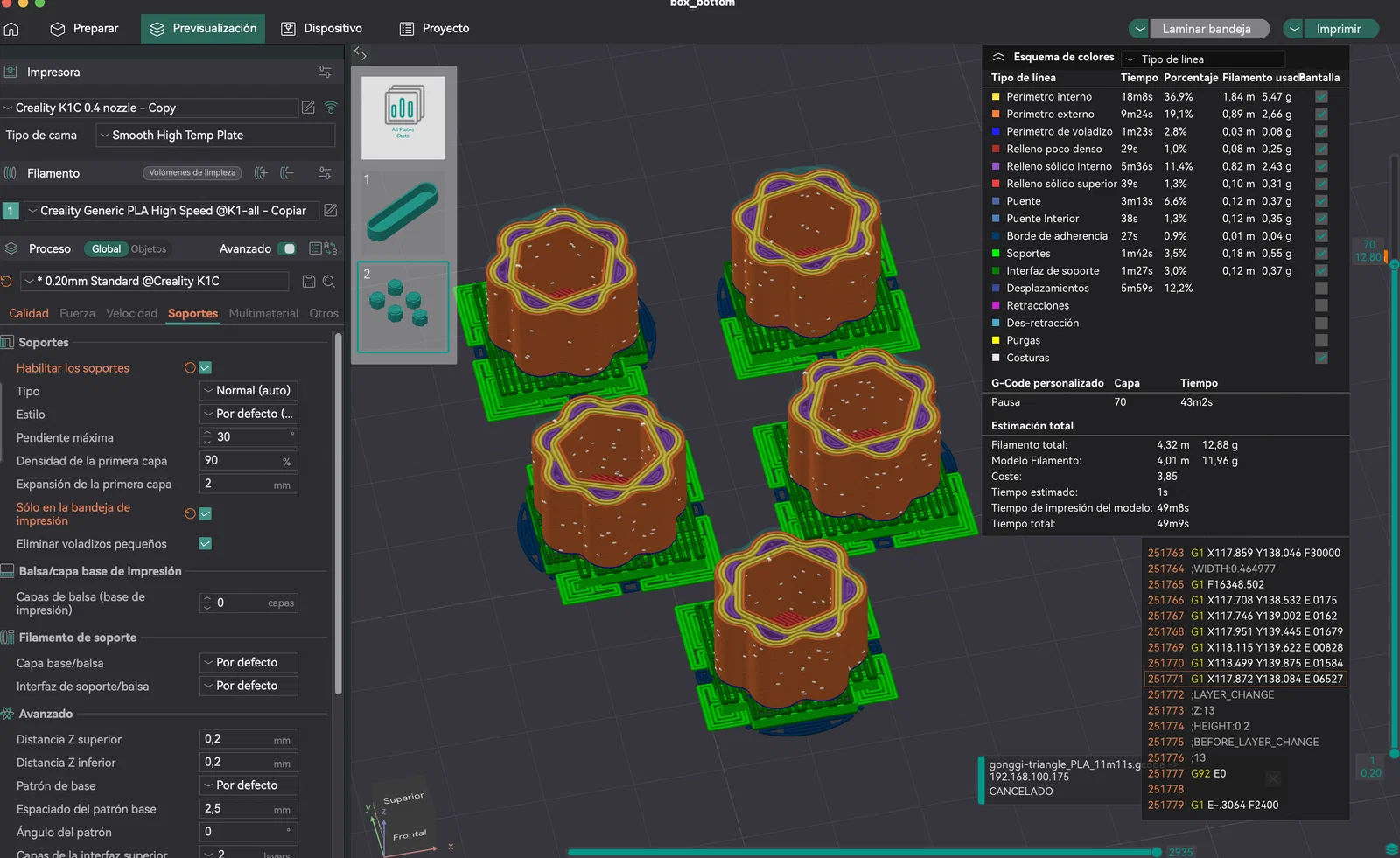 Bạn có thể in mô hình này với support thường trên toàn bộ thân nếu không muốn thêm trọng lượng. Có thể in bằng nhiều màu hoặc một màu duy nhất bằng cách điều chỉnh lớp in trong phần mềm slicer. Support thường chỉ cần đặt trên khay và ở lớp in thứ 63, bạn có thể thêm lệnh tạm dừng (pause) để lồng 2 con ốc M6 vào bên trong mô hình. Ý tưởng này được lấy từ nhiều nguồn khác nhau, một phần cho hộp đựng và nhiều phần khác cho các quân cờ, nhưng tôi đã thiết kế lại toàn bộ từ đầu. Hiện tôi đã thêm hộp đựng hình vuông và đang làm tiếp phiên bản hình tròn. 02/07/2025 - 22:57 Các file quân cờ đã được cập nhật do có sự nhầm lẫn với file cũ, tôi rất xin lỗi vì điều này.