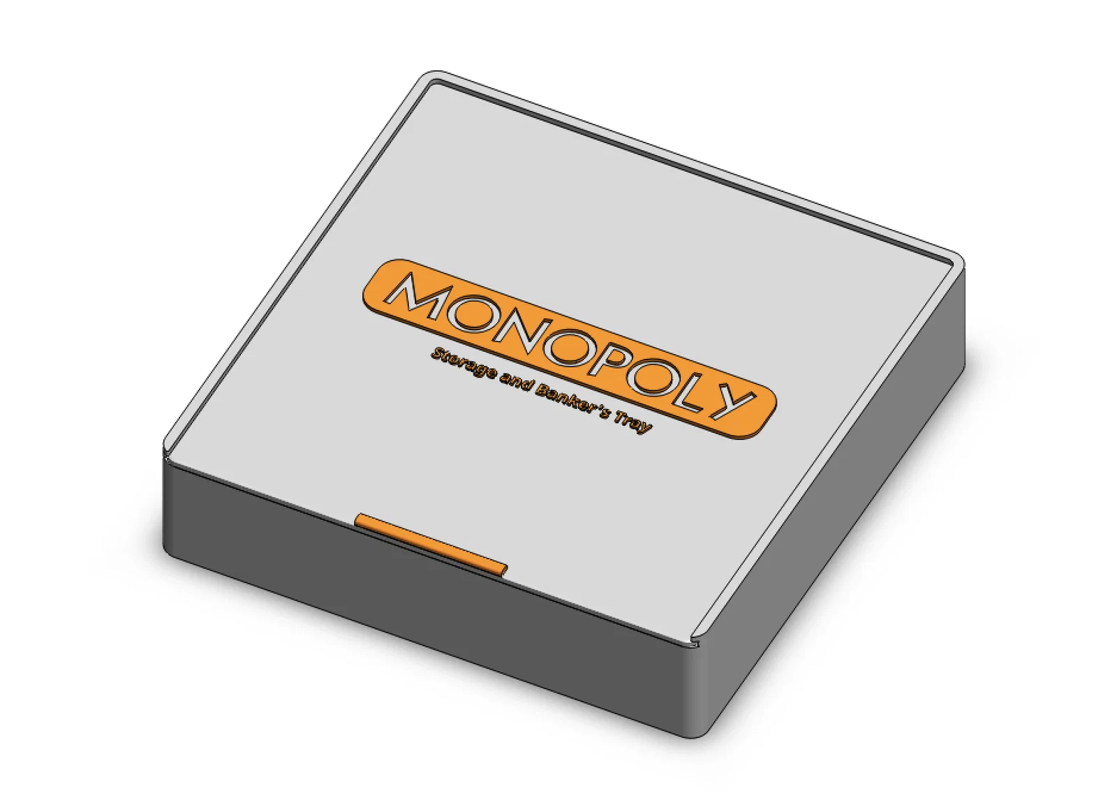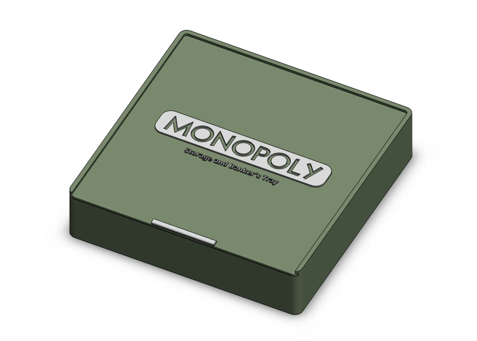 Một chiếc hộp đa năng với nắp trượt giúp bạn cất giữ bộ cờ Monopoly gọn gàng, đồng thời biến thành khay đựng tiền và thẻ bài chuyên nghiệp khi chơi. Thiết kế thông minh, không cần hỗ trợ in, giúp việc mang vác trò chơi đi xa trở nên dễ dàng hơn bao giờ hết.