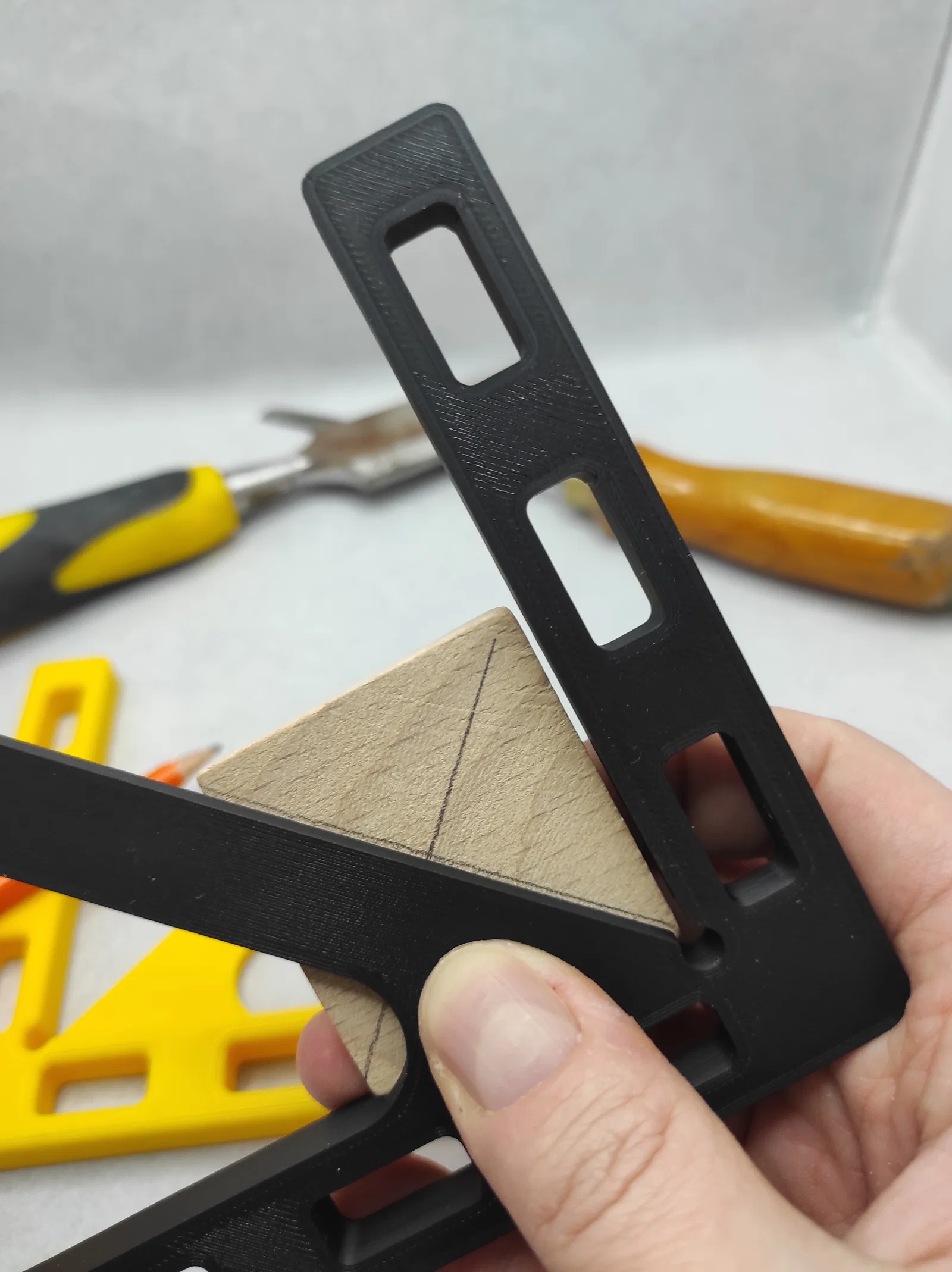 Dụng cụ hỗ trợ tìm tâm cho thợ mộc, làm đồ gỗ hoặc xưởng nhà bạn. In nhanh và dễ dàng. Mình đã in thử bằng chất liệu PLA, layer 0.3, infill 20%. Lưu ý: Bạn không được phép bán các bản in hoặc sản phẩm phái sinh dựa trên mô hình này. Mình chia sẻ mô hình này chỉ vì mục đích sử dụng cá nhân, nên làm ơn đừng làm khó nhau nhé.