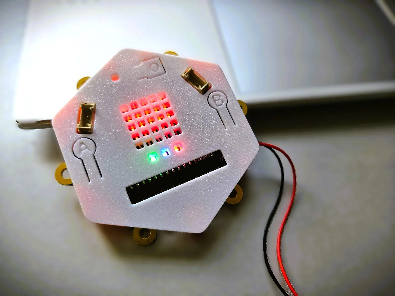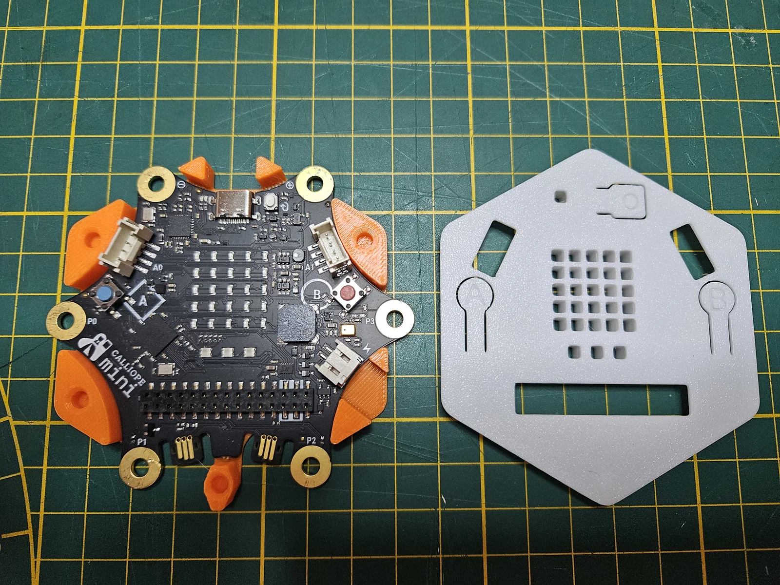Đây là vỏ bảo vệ cho Calliope mini 3, đã bao gồm cả tấm khuếch tán ánh sáng cho đèn LED.