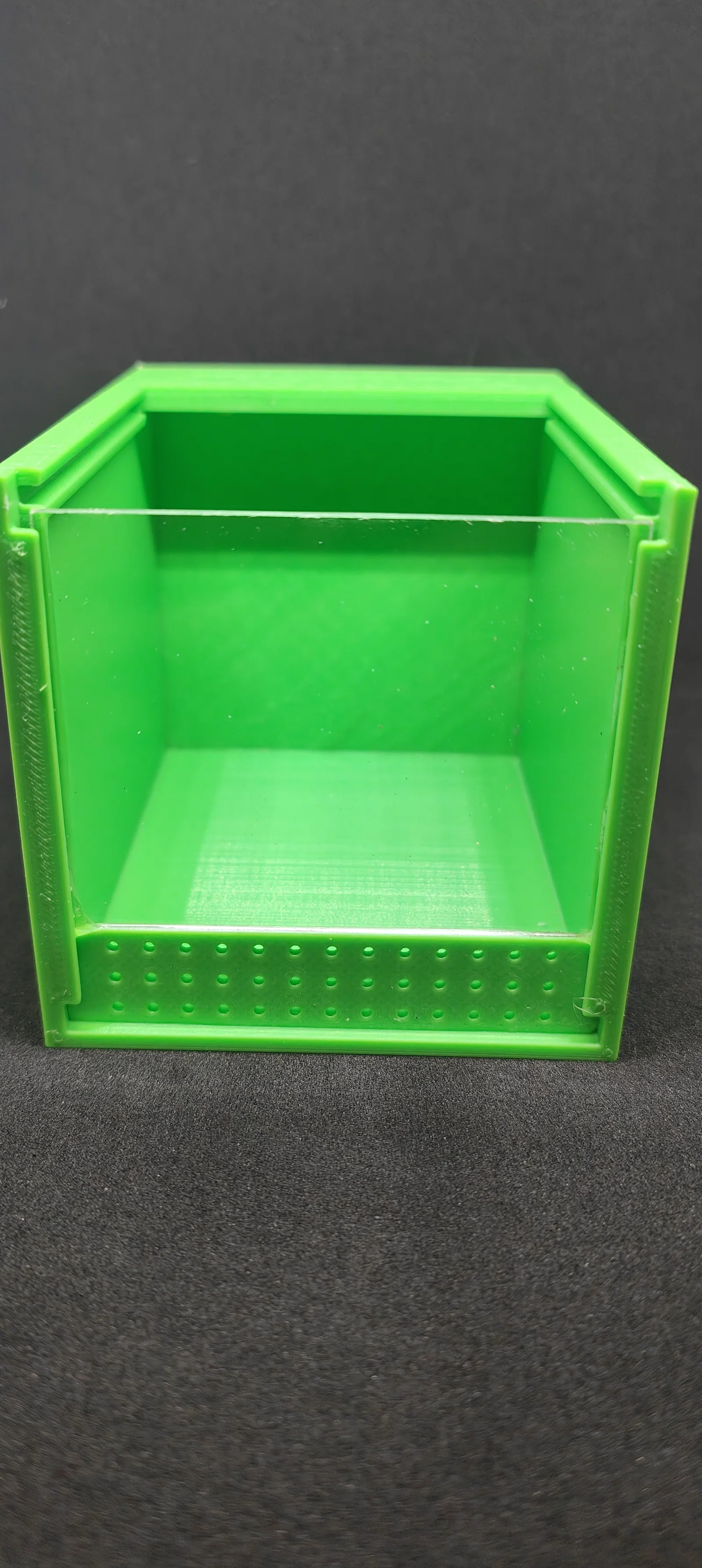 Mẫu thiết kế terrarium nhỏ gọn với kích thước 8cm x 8cm x 10cm, cực kỳ phù hợp để nuôi và chăm sóc các loài động vật không xương sống cỡ nhỏ. Sản phẩm yêu cầu in 3D phần khung và lắp thêm 2 tấm kính mica để hoàn thiện.