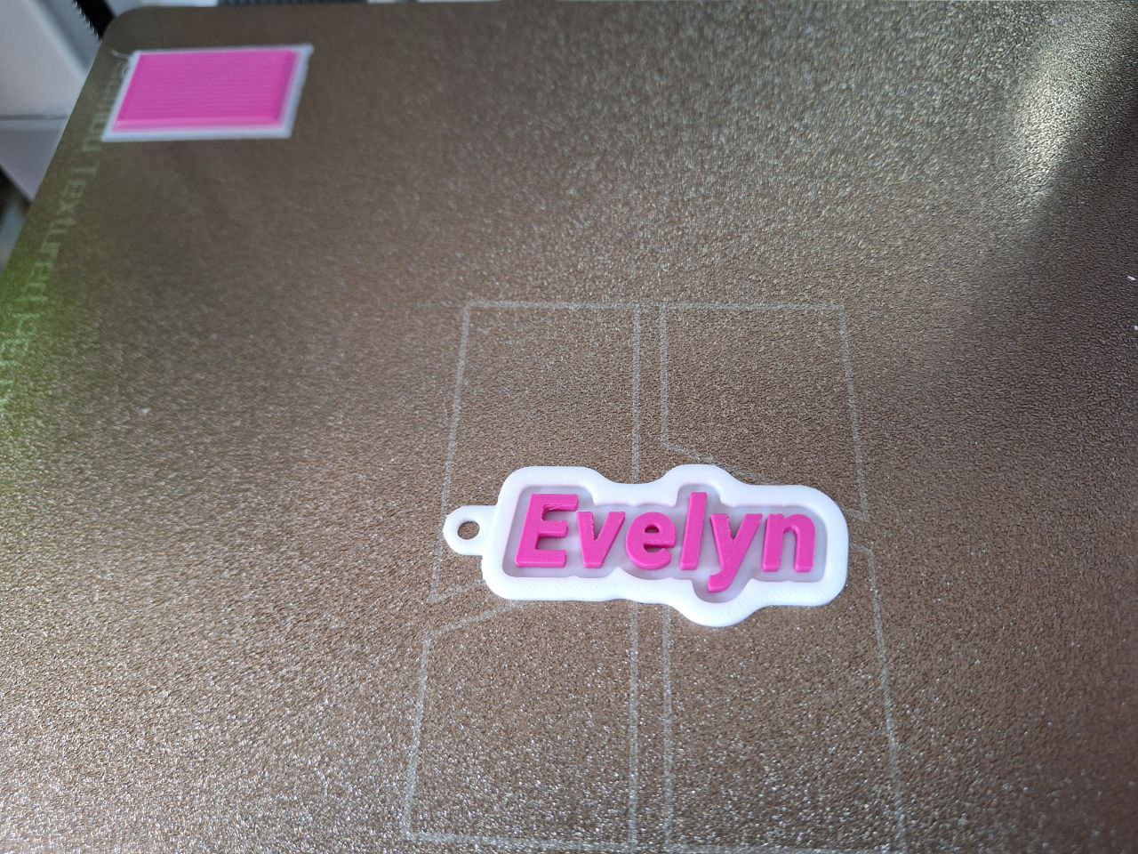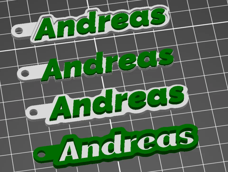 Khác với các loại móc khóa thông thường, hình dáng bên ngoài của mẫu này được thiết kế để tự động thay đổi theo đường viền của phông chữ, giúp kích thước của móc khóa luôn linh hoạt. Bạn có thể hạ thấp phần chữ so với mép viền để bảo vệ các ký tự tốt hơn. Ngoài ra, bạn còn có thể thay đổi màu sợi nhựa (filament) ở một hoặc hai lớp cuối cùng của phông chữ. Nếu tiếp tục in bằng màu cơ bản, chỉ phần chữ sẽ đổi màu mà không làm ảnh hưởng đến khung viền.