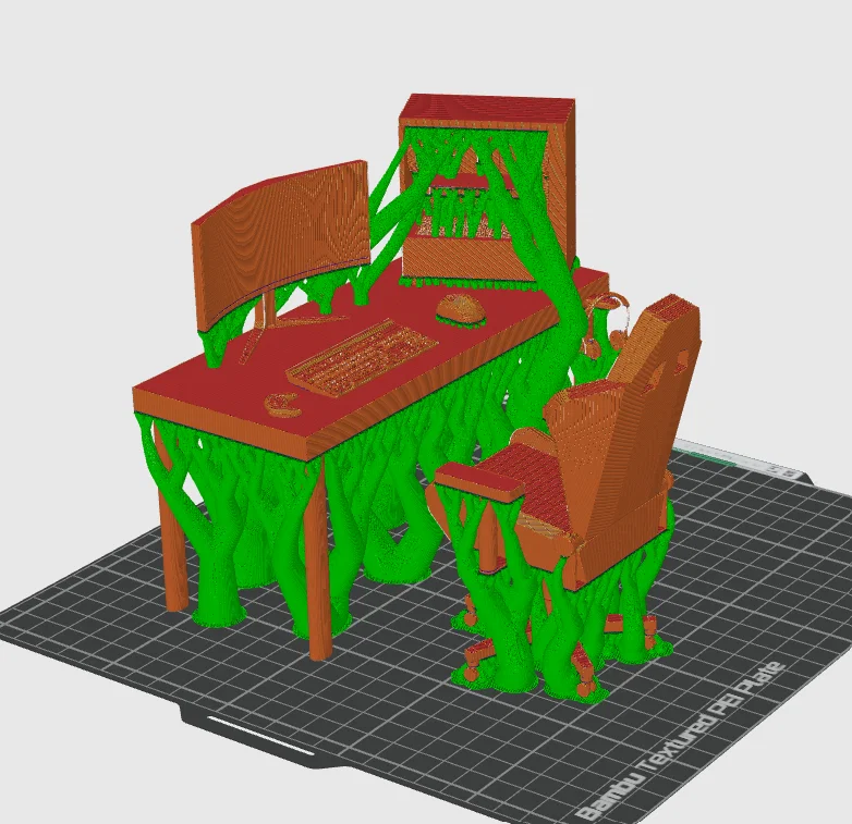 - Hỗ trợ (Supports): Đây là yêu cầu bắt buộc đối với các phần tay cầm ghế và giá đỡ màn hình, hãy thiết lập support hợp lý để dễ dàng tháo gỡ mà không làm hỏng bề mặt mô hình.