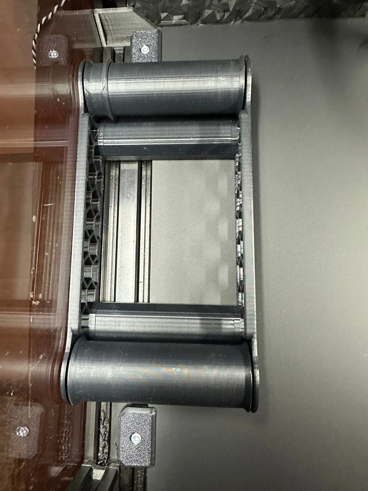 Giá đỡ cuộn nhựa bên trong cho máy in E3NG hoặc các dòng máy in khác. Một con lăn được sử dụng để dẫn hướng cuộn nhựa, hỗ trợ các cuộn nhựa có độ rộng tối đa lên đến 77mm. ### Linh kiện cần thiết: 4x vòng bi 608 hoặc 4x bánh xe V slot, 8x ốc cấy nhiệt M3 (heat-inserts), 8x ốc M3x10, 2-4x đai ốc T-nut M3/ốc M3x10. Không cần in support.