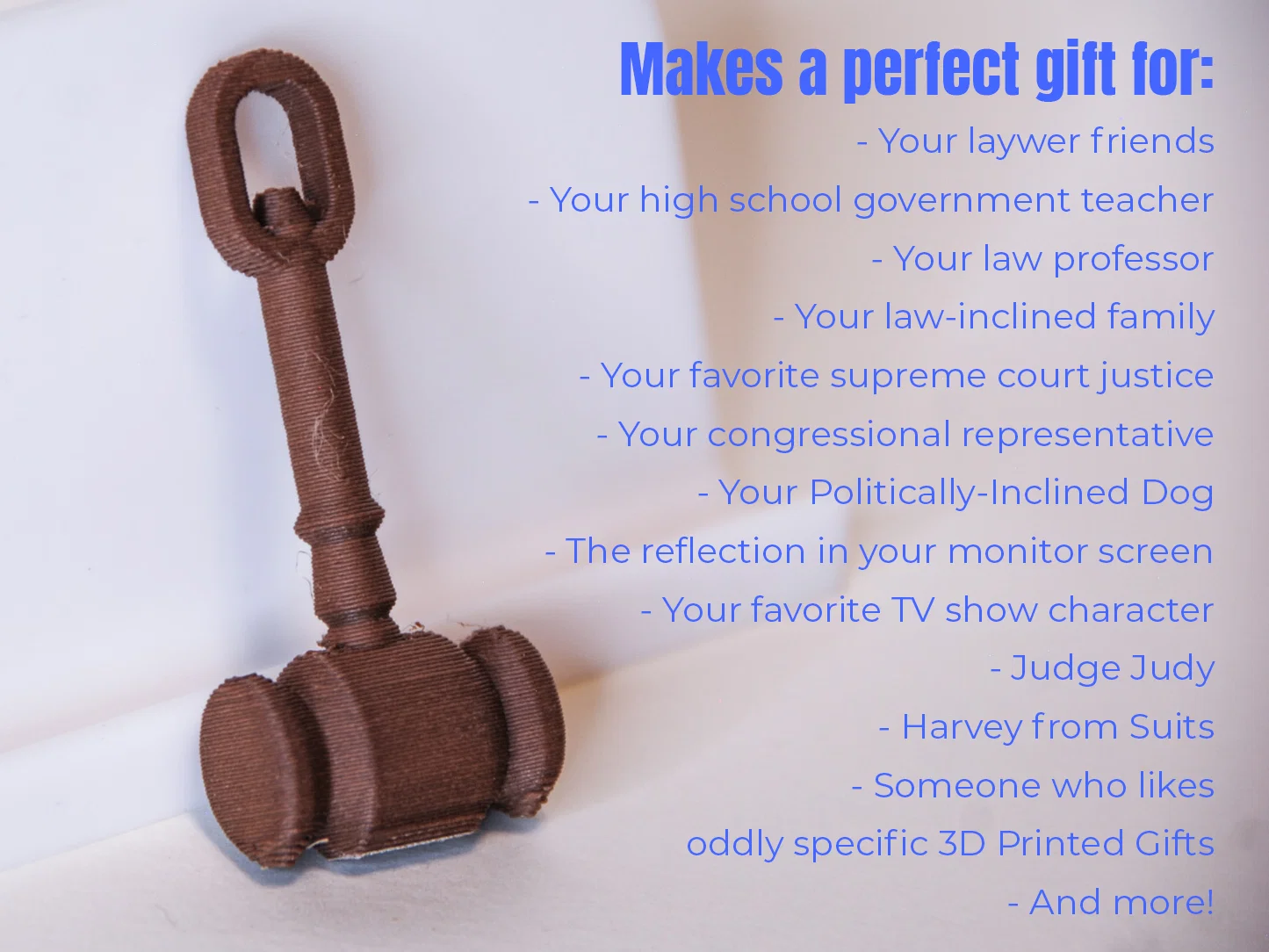 Mình đã thiết kế chiếc móc khóa hình cái búa công lý với kích thước vừa phải này để tặng cho một người bạn luật sư! Khi in bằng nhựa wood PLA, nhìn nó chẳng khác gì một chiếc búa thật phiên bản mini luôn!