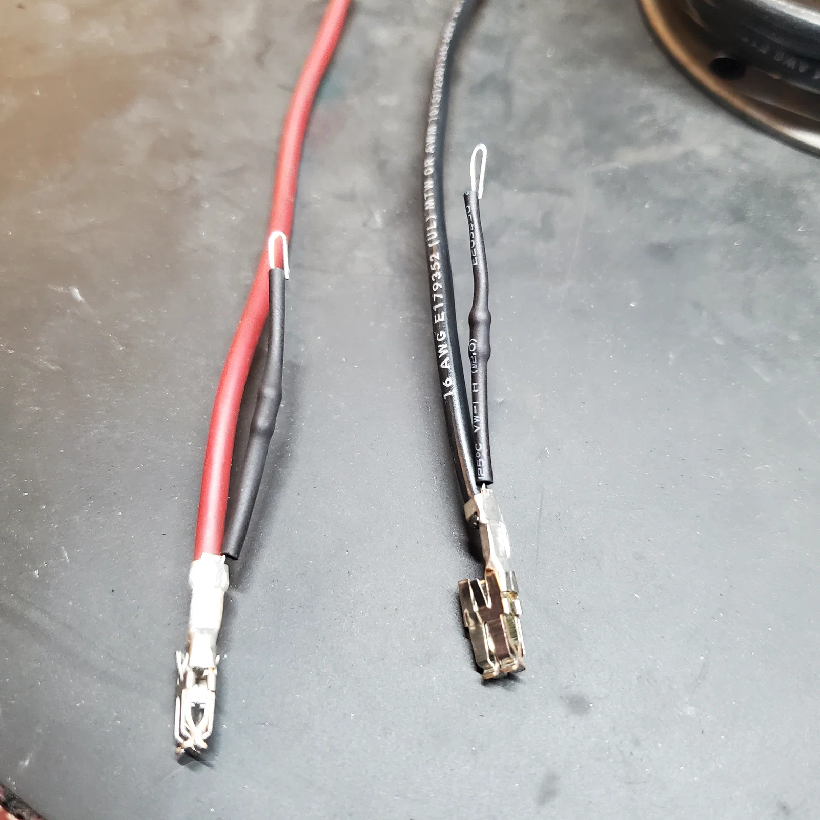 - Cắt dây sao cho dài hơn adapter khoảng ½". Bấm đầu cốt dẹt vào các đầu dây.