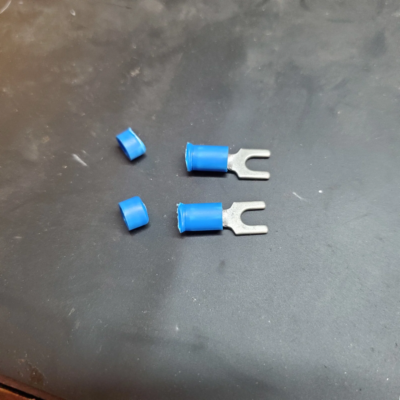 - (2 cái) Đầu cốt dẹt cho vít #6 (có thể thay bằng đầu khoen, nhưng sẽ khó lắp hơn)