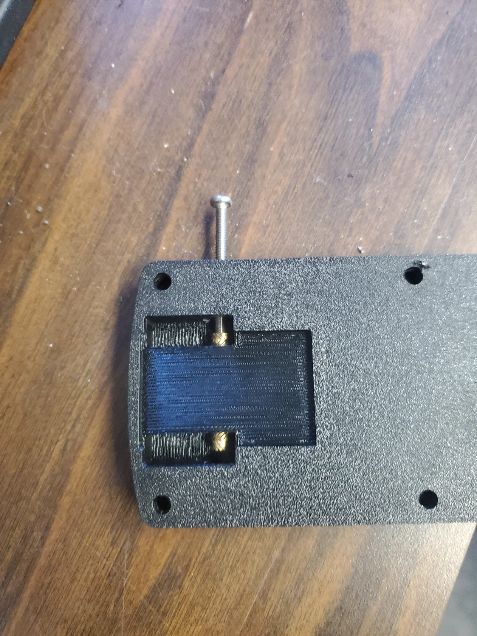 - Dùng vít dài để định vị heat set insert vào các lỗ bên trong adapter pin. Lắp thêm insert vào 4 lỗ phía trên. Đừng dùng loại insert quá dài hoặc nhấn quá sâu để tránh bị chạm chập.