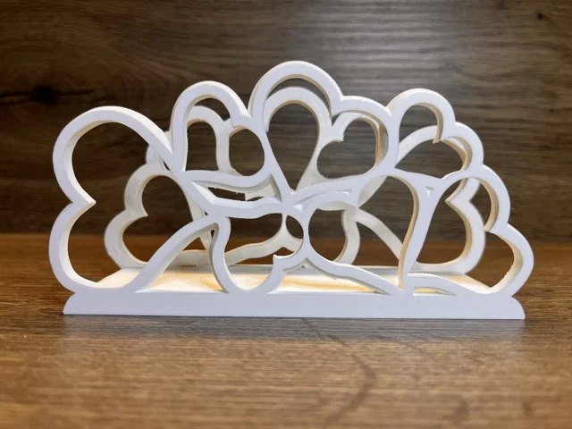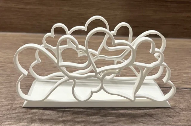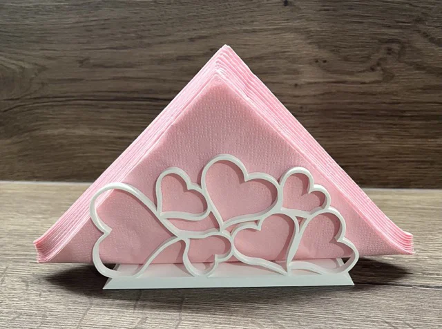 Bạn đang tìm kiếm một món phụ kiện vừa tiện dụng lại vừa tăng thêm phần thẩm mỹ cho không gian bếp hay bàn ăn của gia đình? Mẫu giá đựng khăn giấy (napkin holder) với họa tiết những trái tim xếp chồng lên nhau này chính là lựa chọn tuyệt vời dành cho bạn. Với thiết kế tinh tế, sản phẩm không chỉ giúp giữ gọn gàng xấp khăn giấy mà còn đóng vai trò như một vật trang trí đầy ngọt ngào cho căn nhà.
