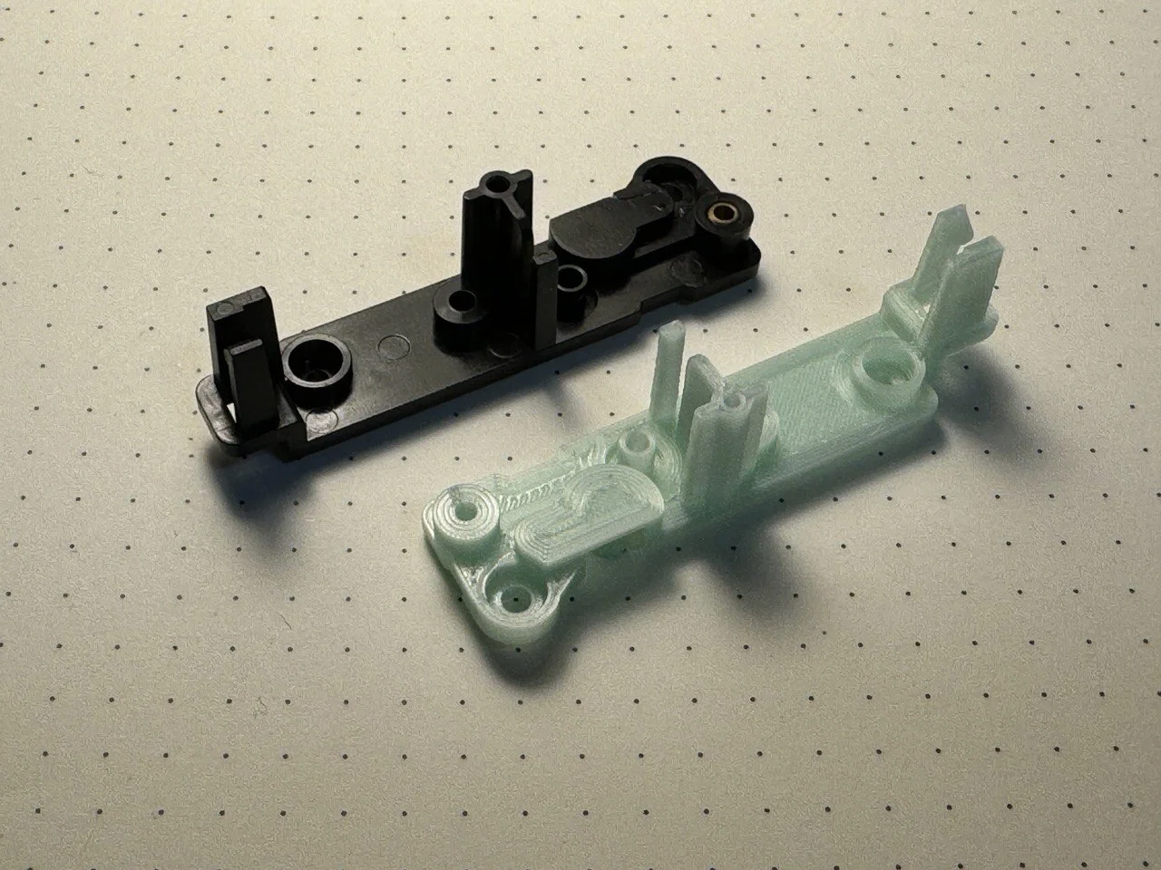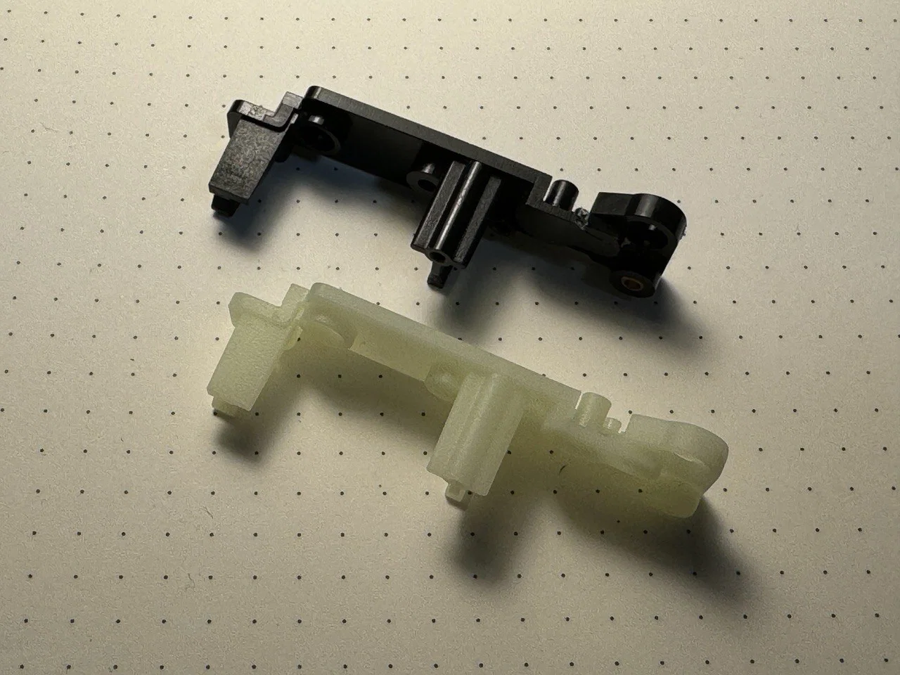Ban đầu mình có in thử bằng PLA để kiểm tra độ khớp, sau đó mình in bằng nhựa resin 9600. Phần linh kiện bằng resin đã được lắp vào máy của mình và nó vẫn giữ nguyên hình dạng sau vài tháng sử dụng.