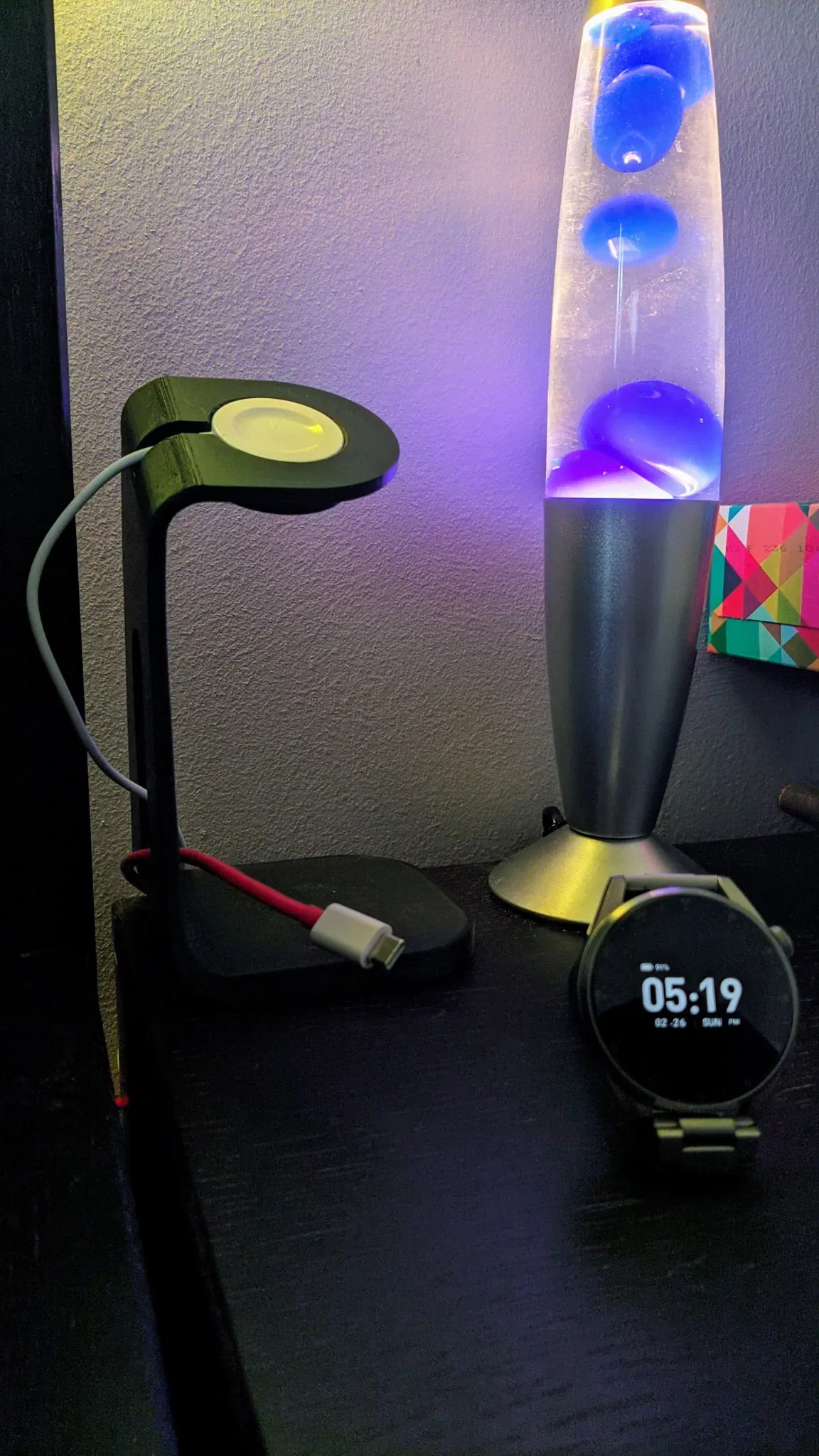 Nó vừa khít với bộ sạc, và bạn có thể chạy nhiều cáp qua khe bên cạnh của giá như một tổ chức cáp. Giá tự đứng rất hoàn hảo (có hoặc không có đồng hồ), không bị nâng lên khi lấy đồng hồ ra, nhưng chỉ để chắc chắn rằng tôi không làm rơi nó, tôi đã thêm một số lỗ ở dưới đáy để thêm trọng lượng, nhưng sau đó đã chuyển sang ý tưởng thêm Bluetack (keo dính) vào 2 lỗ tròn, điều này đã làm cho giá dính chặt vào bàn đầu giường của tôi.