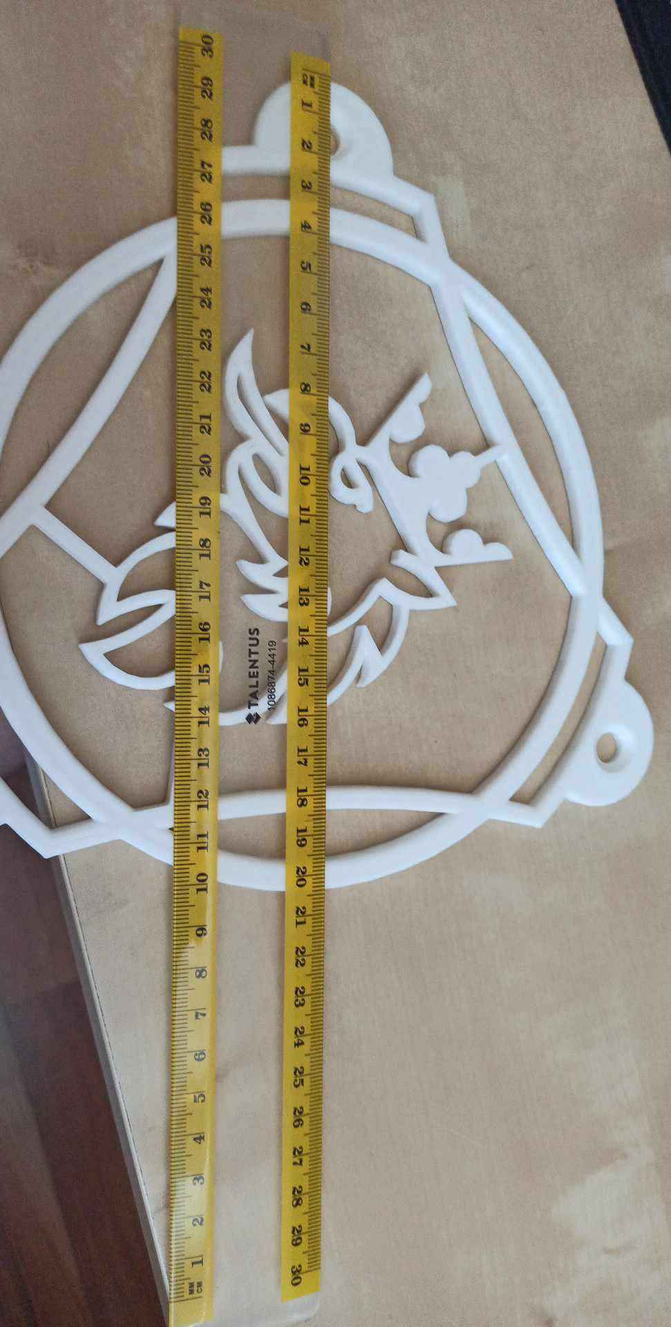 • Kích thước lý tưởng: Theo hình ảnh tham khảo, logo có kích thước khá vừa vặn, thích hợp làm vật trang trí treo ở nhiều vị trí khác nhau mà không chiếm quá nhiều diện tích.